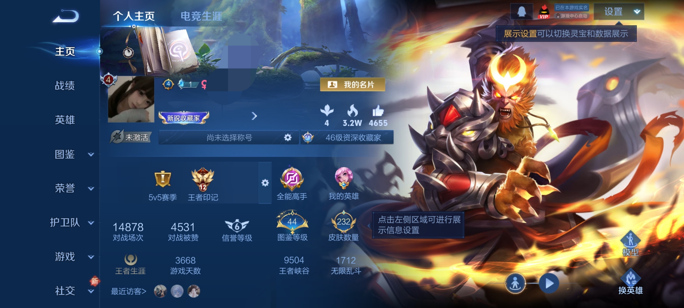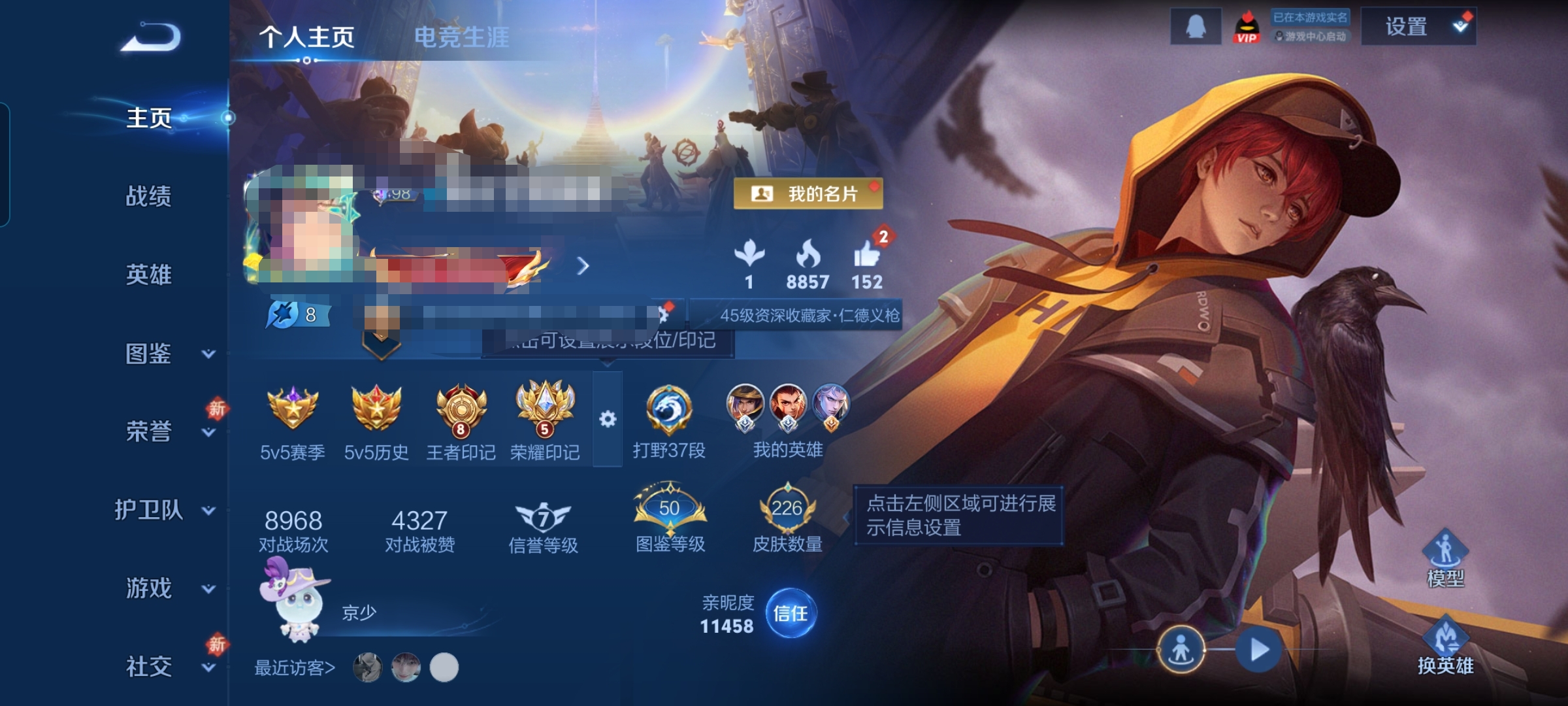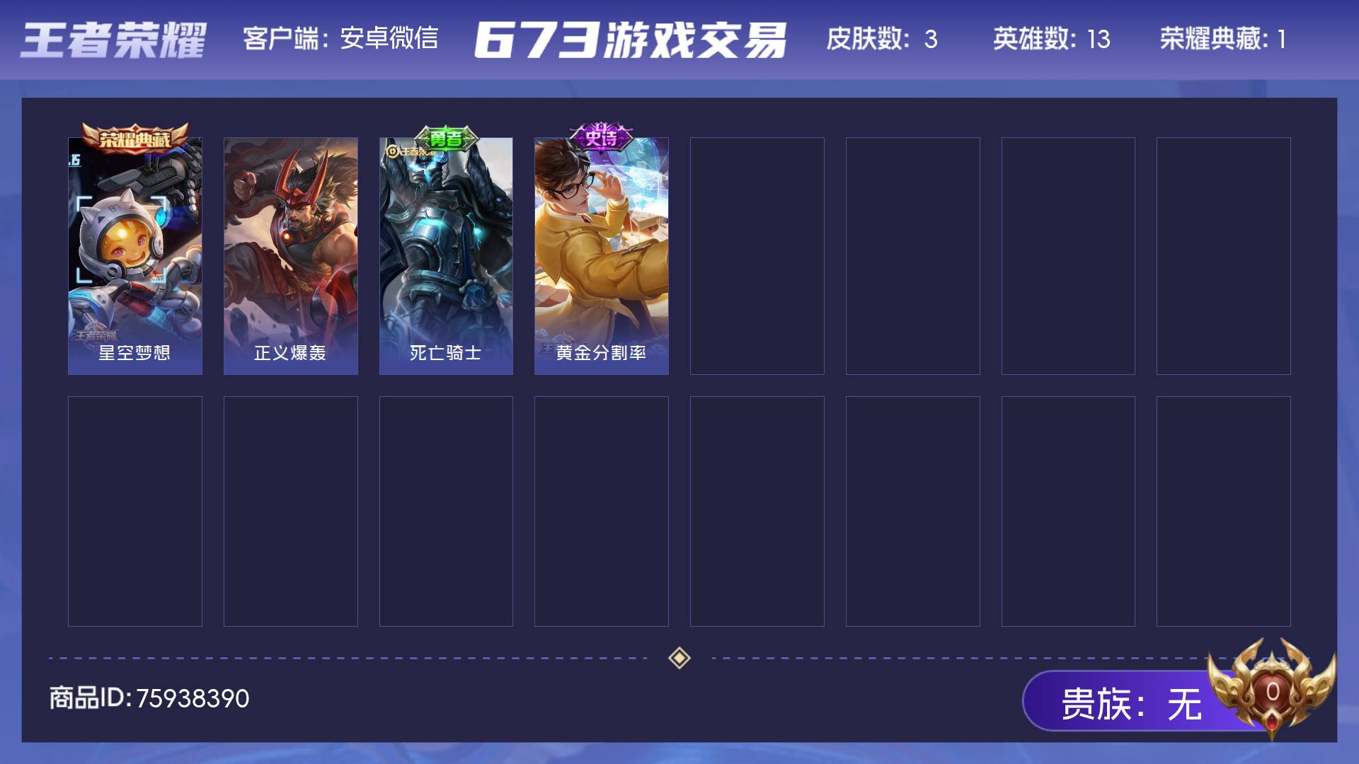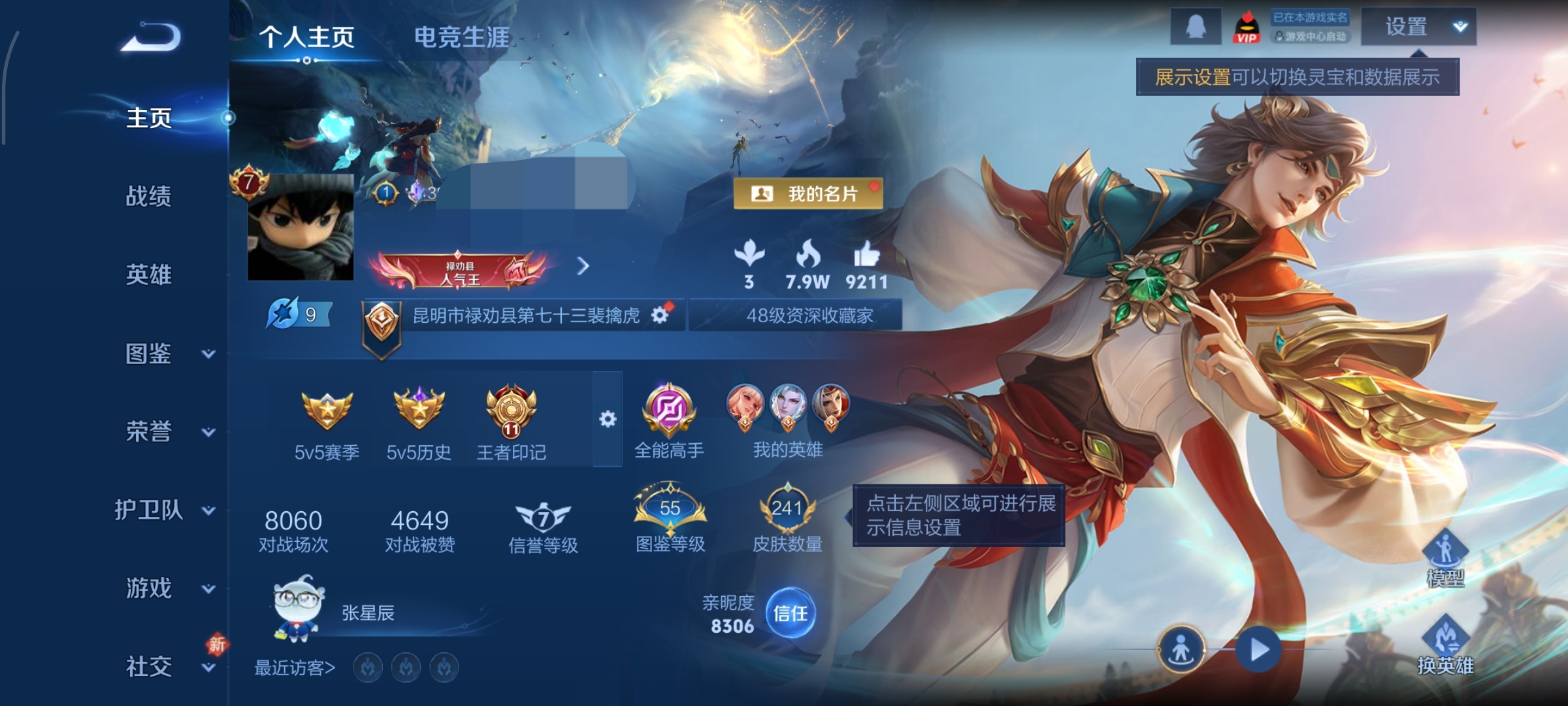 V7 皮肤74 英雄95 至尊星耀 荣耀典藏1 无双皮肤2 传说10 其他皮肤66