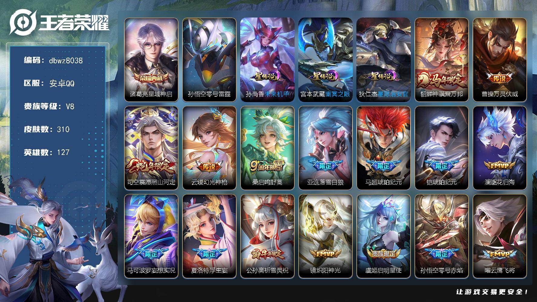 安卓Q-无二次-V8(53018分)-310皮-1典藏-25传说-