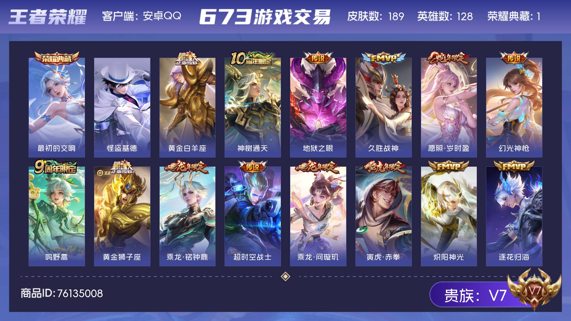 V7 皮肤189 英雄128 荣耀王者 荣耀典藏1 珍品传说1 星传说2 传说21