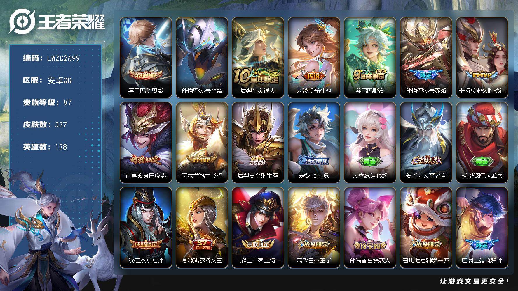 V7-最强王者段位-128英雄-337皮肤-1典藏皮肤-1星传说-8传说-90史诗