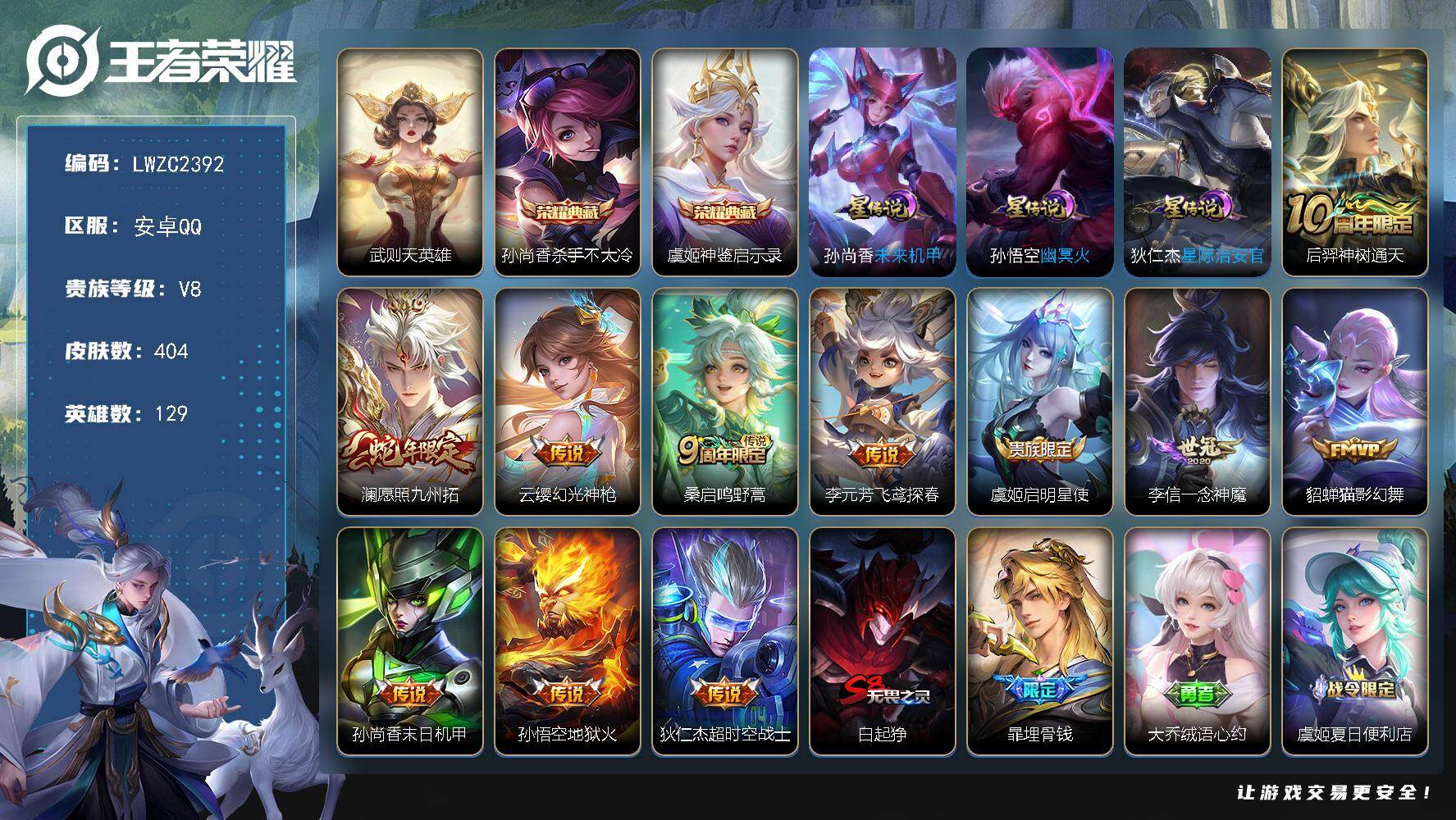 -V8-永恒钻石I段位-129英雄-404皮肤-2典藏皮肤-3星传说-1典藏英雄-11传说-116史诗