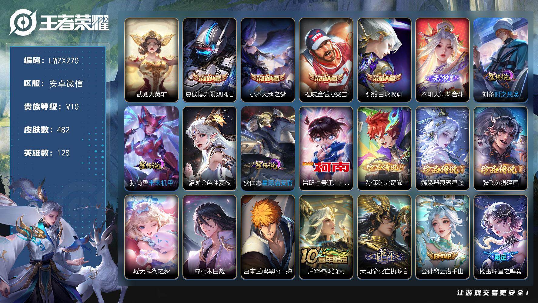 -V10-至尊星耀IV段位-128英雄-482皮肤-4典藏皮肤-1典藏英雄-1无双-7珍品传说-43传说-158史诗