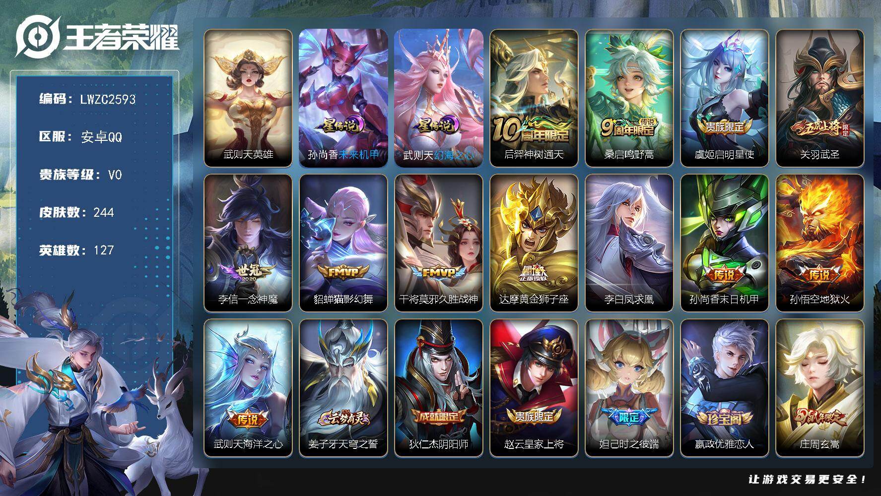 V0-永恒钻石III段位-127英雄-244皮肤-1典藏英雄-2星传说-12传说-66史诗
