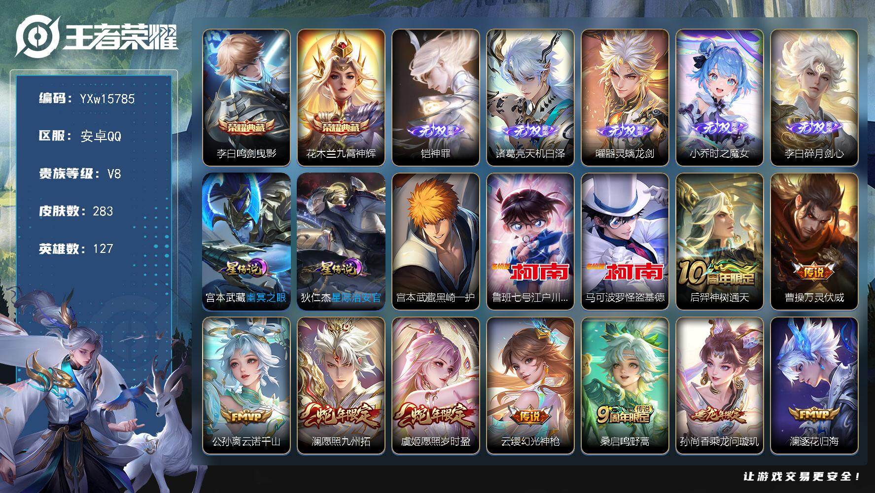 127英雄-283皮肤-13王者印记-180铭文-贵族积分6w