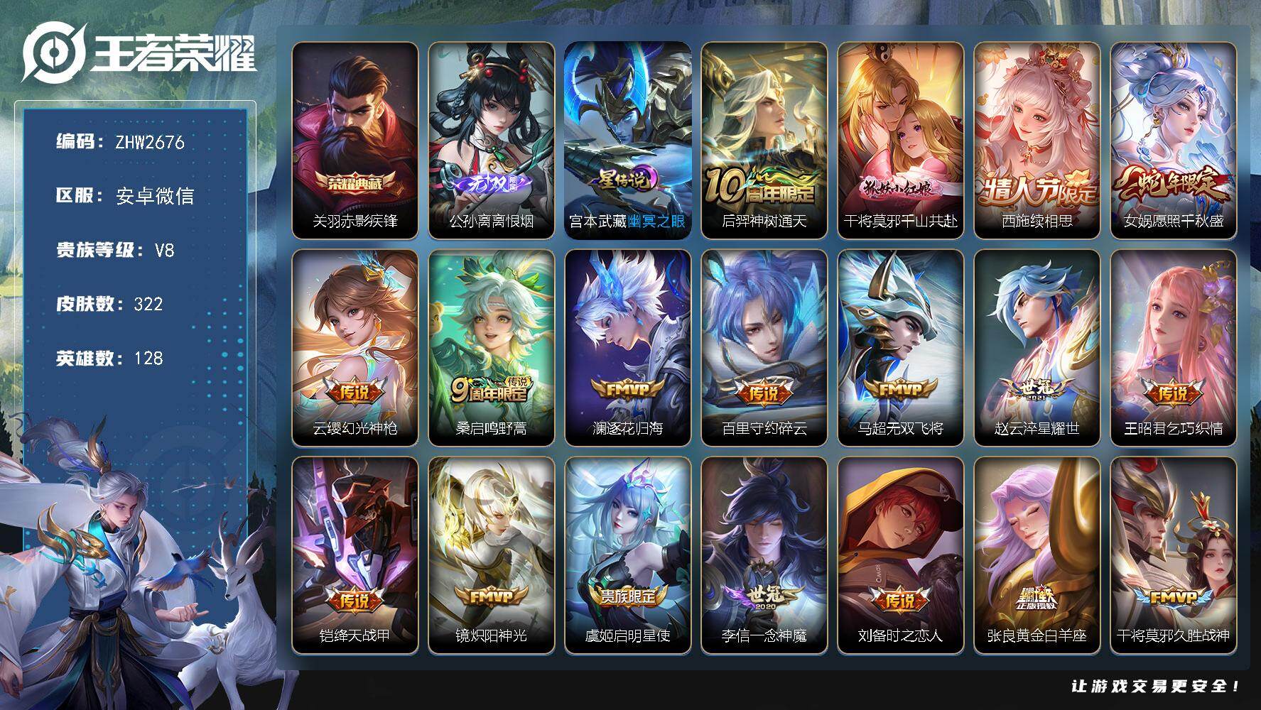 V8-至尊星耀IV段位-128英雄-322皮肤-1典藏皮肤-1无双