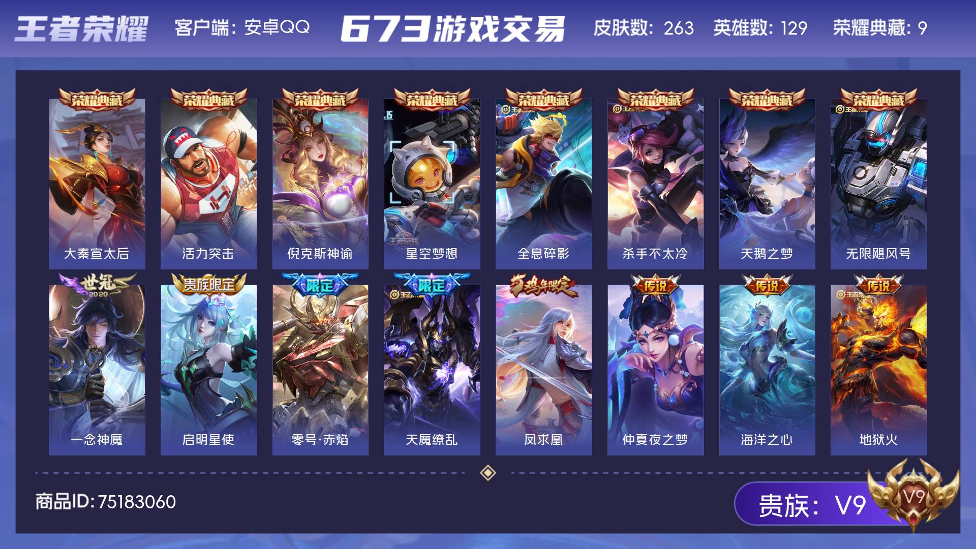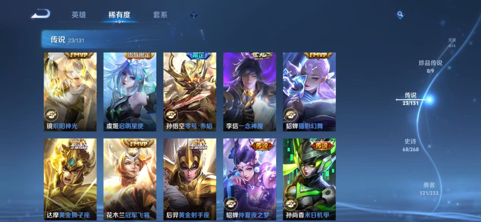 V9 皮肤263 英雄129 荣耀黄金 荣耀典藏9 传说10 其他皮肤251