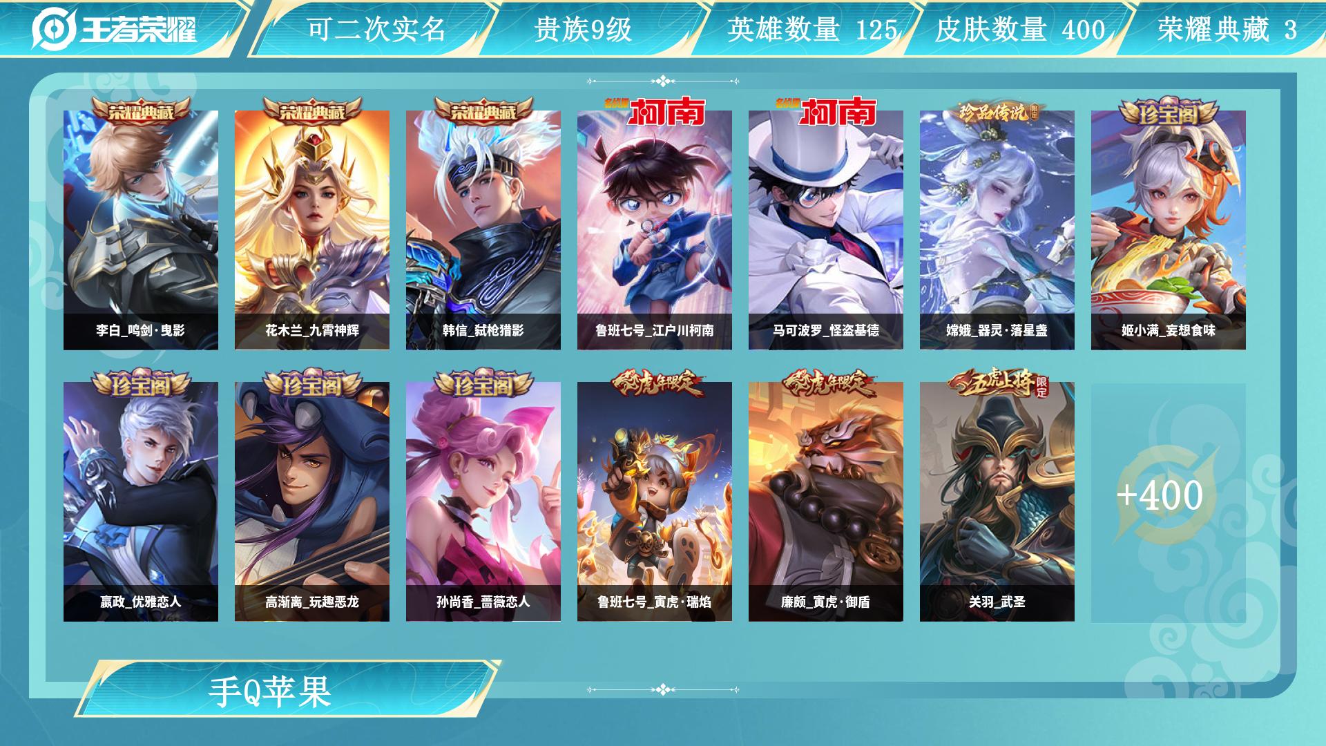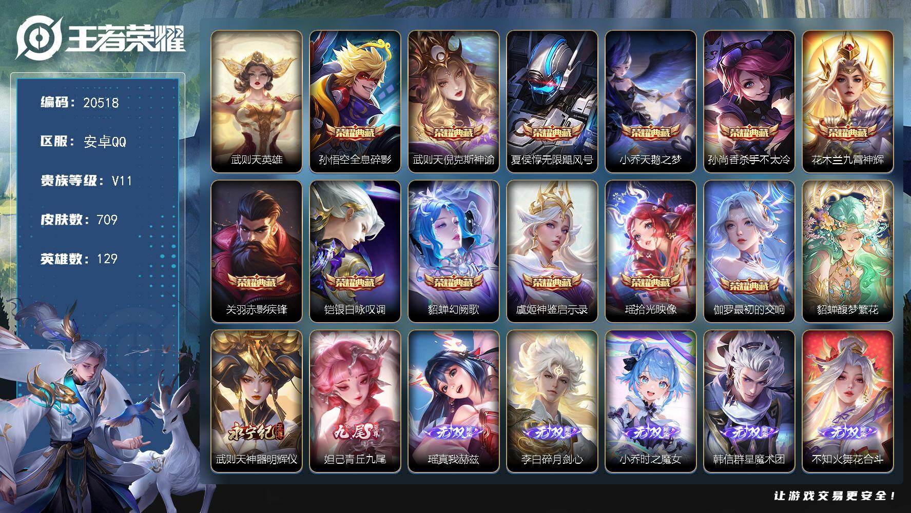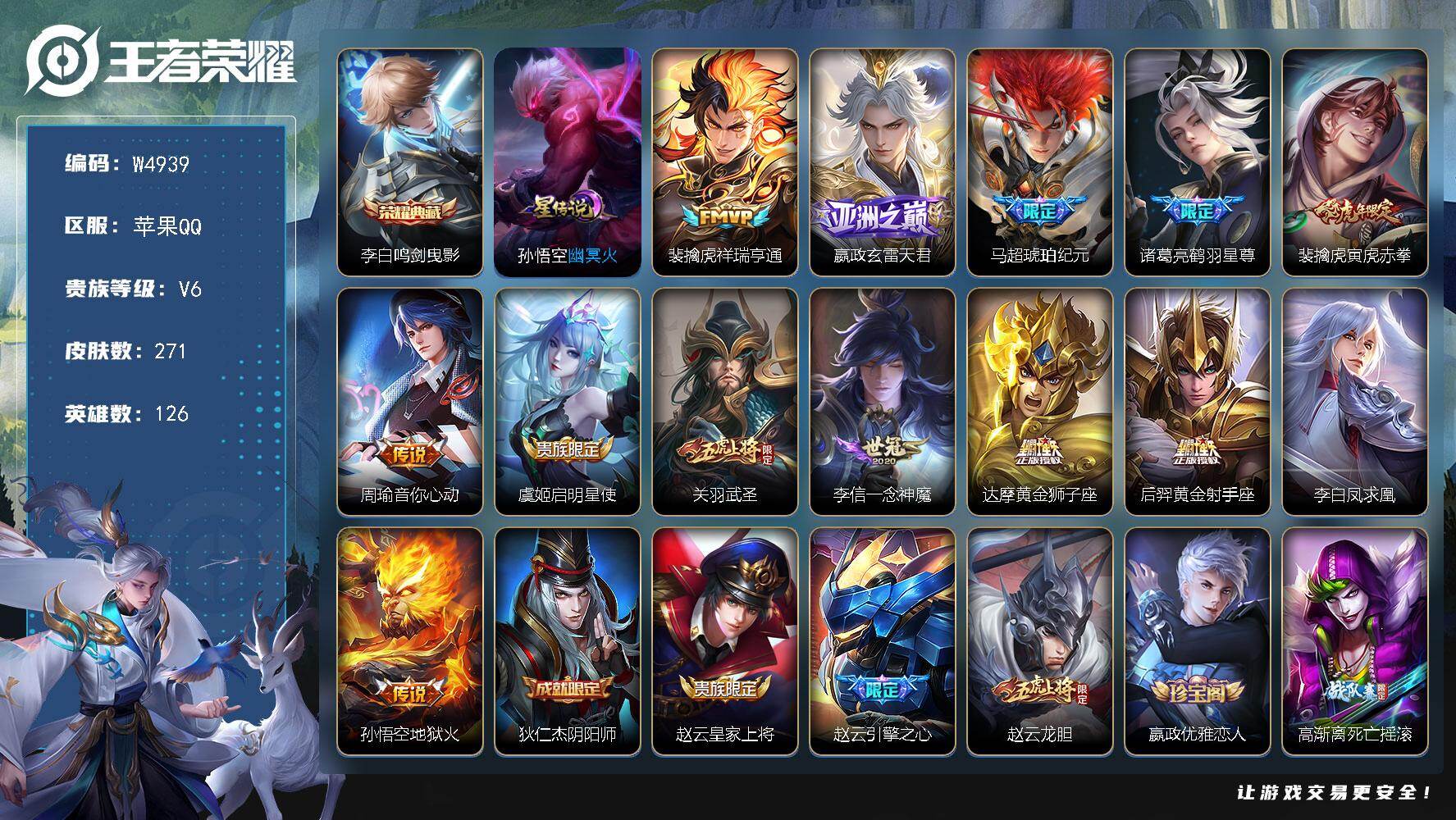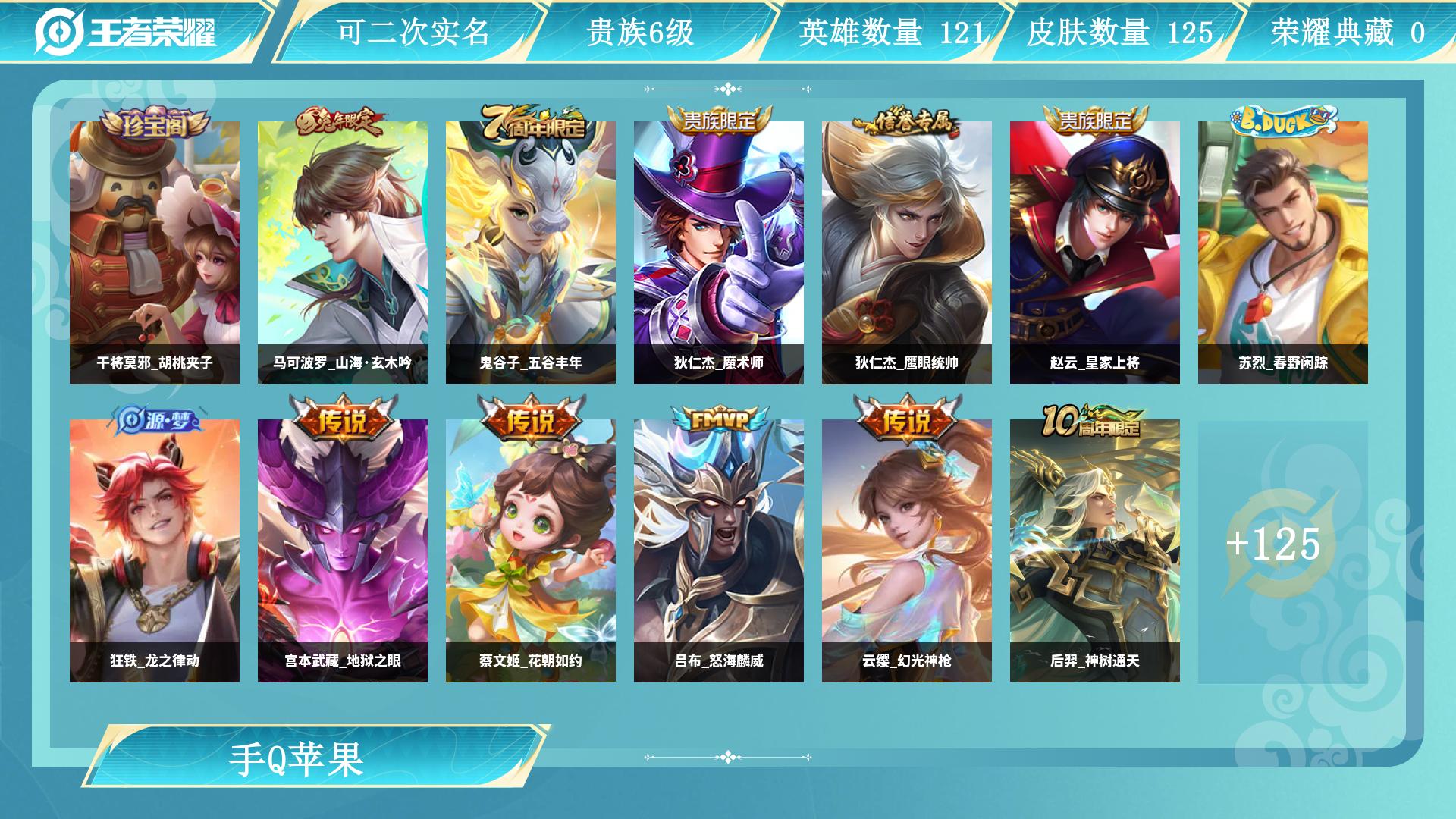 安卓Q-V3-荣耀黄金II段位-126英雄-161皮肤-1典藏皮肤-10传说-