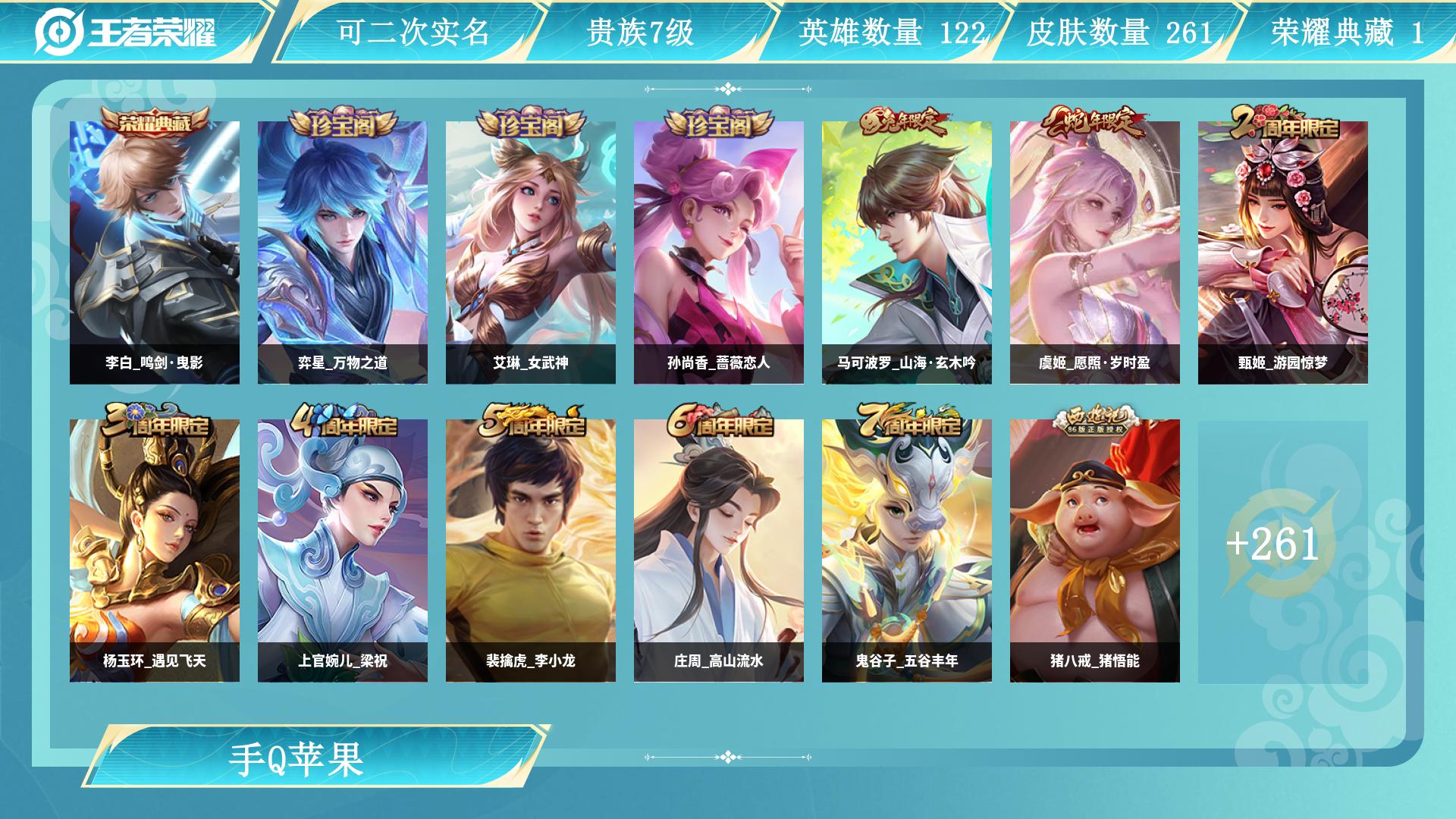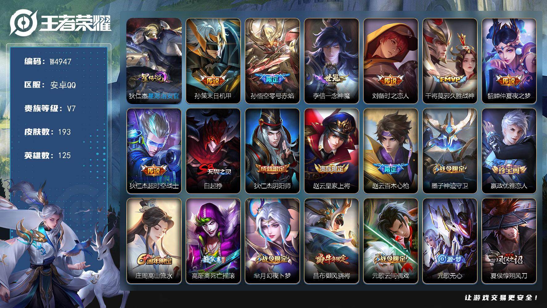 【W4947】安卓Q-有二次-贵7-125英雄-193皮肤-7传说-56限定-