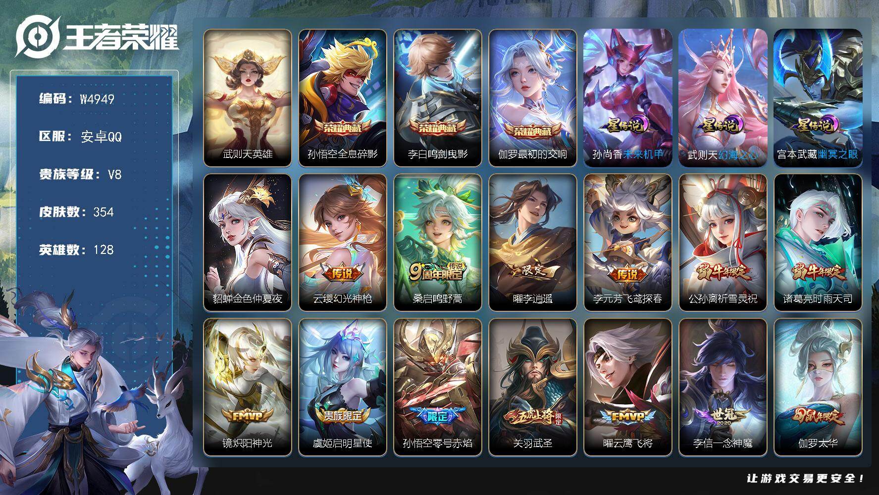 【W4948】安卓Q-有二次-贵8-127英雄-282皮肤-2典藏-8传说-7