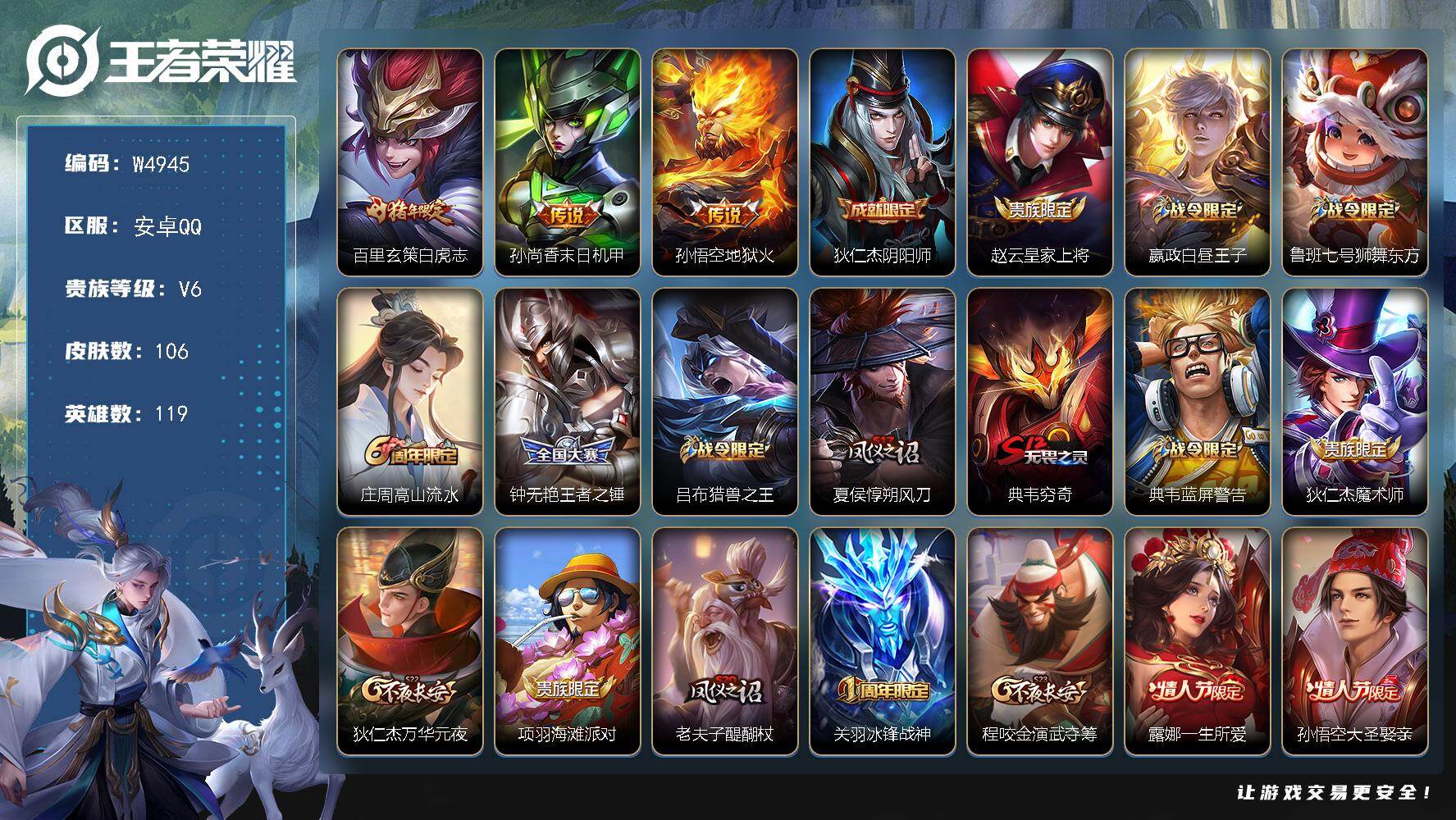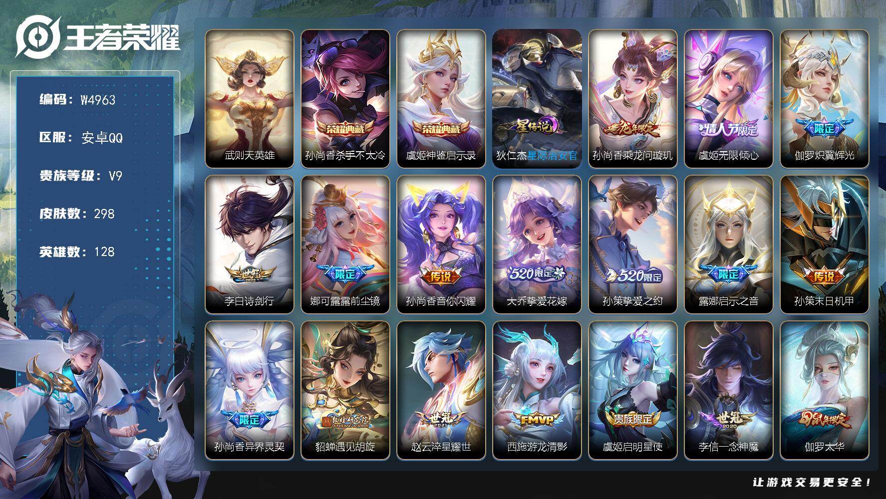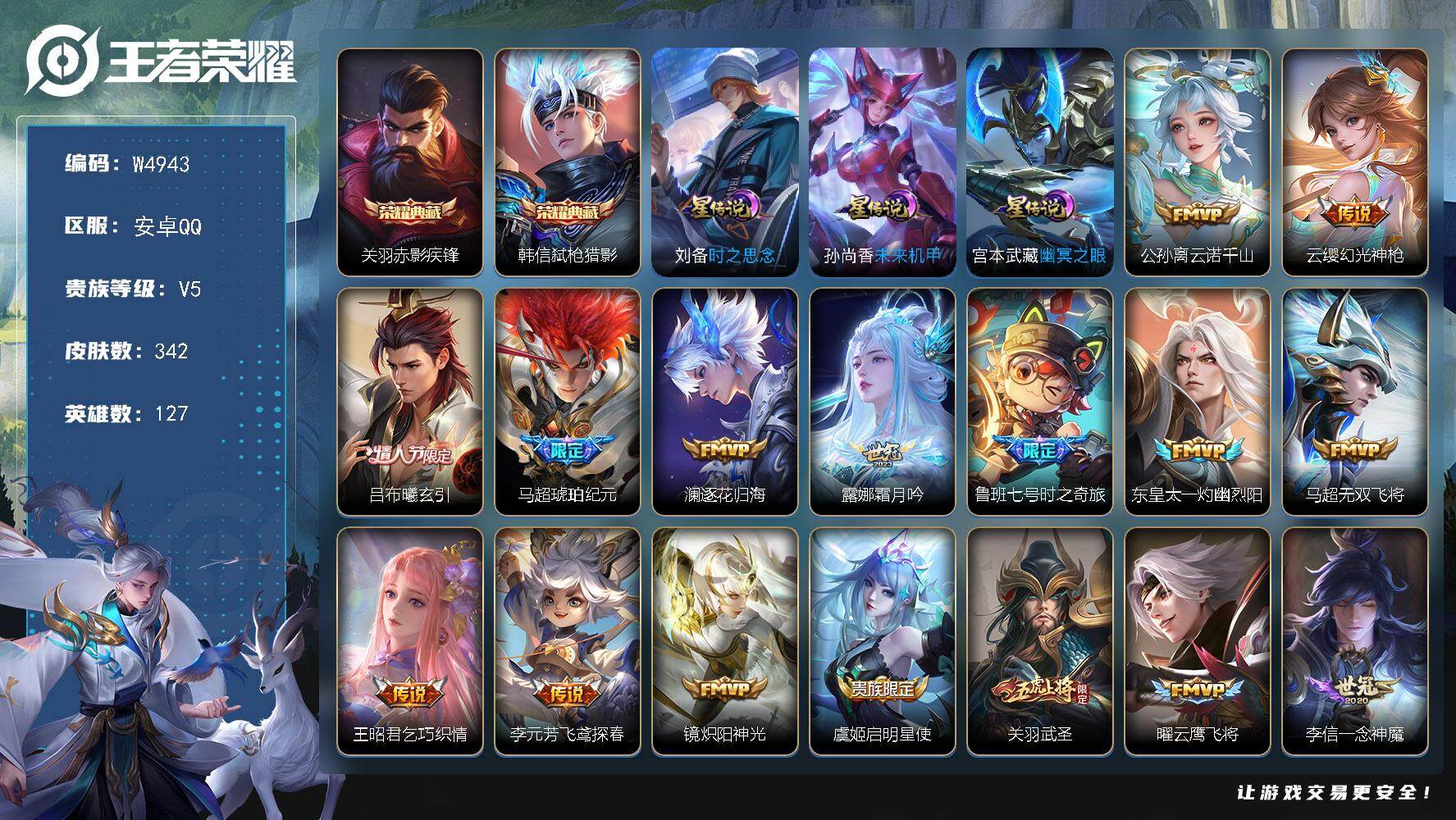 【W4958】安卓QQ-有二次-贵5-124英雄-115皮肤-4传说-36限定