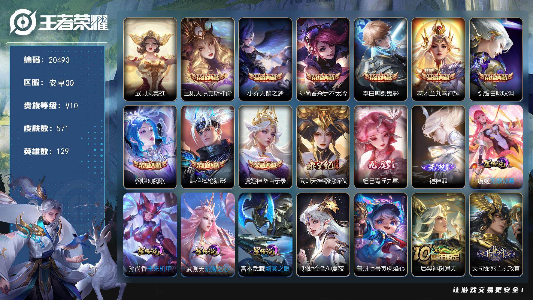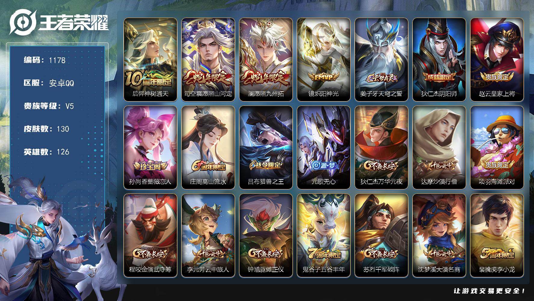 安卓Q-V5-126英雄-130皮-4传说-27史诗【传说】后羿神树通天,司