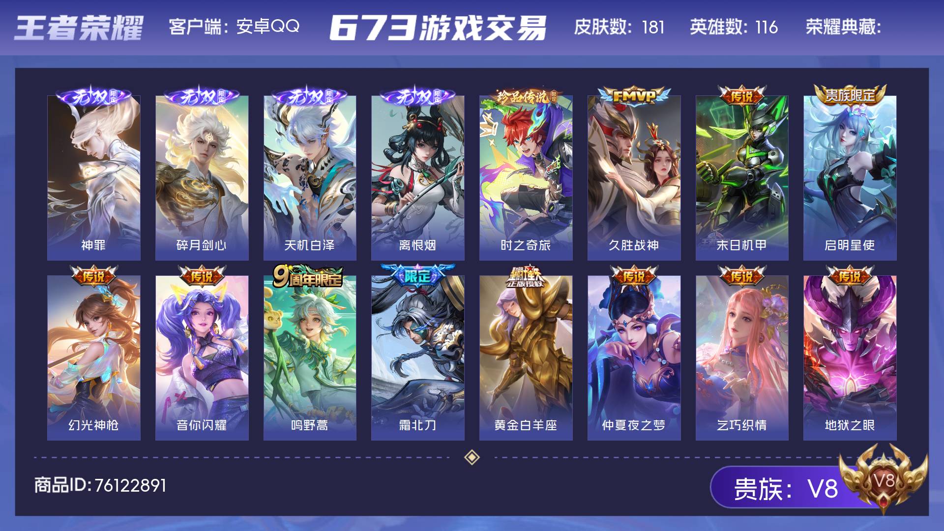 V8 皮肤181 英雄116 荣耀王者 无双皮肤4 珍品传说1 传说17 其他皮肤166