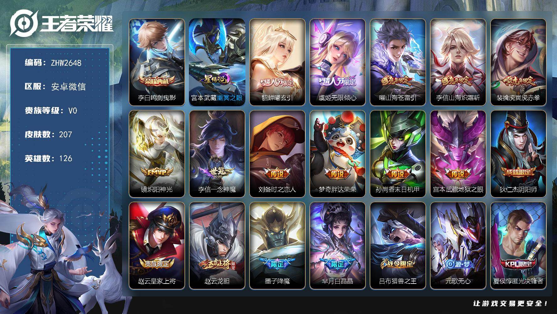 V0-至尊星耀III段位-126英雄-207皮肤-1典藏皮肤-11传说-63史诗