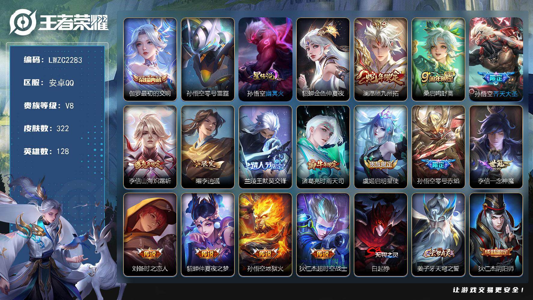 V8-永恒钻石IV段位-128英雄-322皮肤-1典藏皮肤-14传说-89史诗-3星元