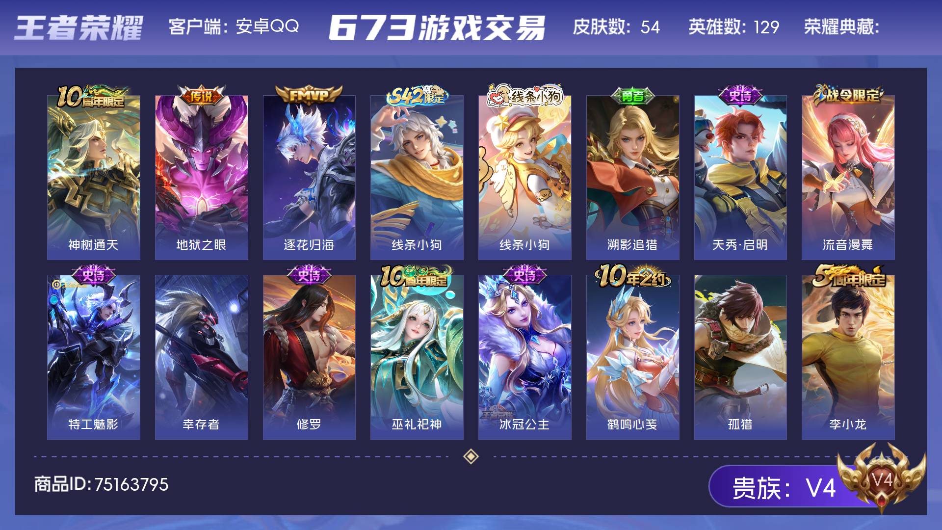 V4 皮肤54 英雄129 永恒钻石 星传说1 传说3 其他皮肤54