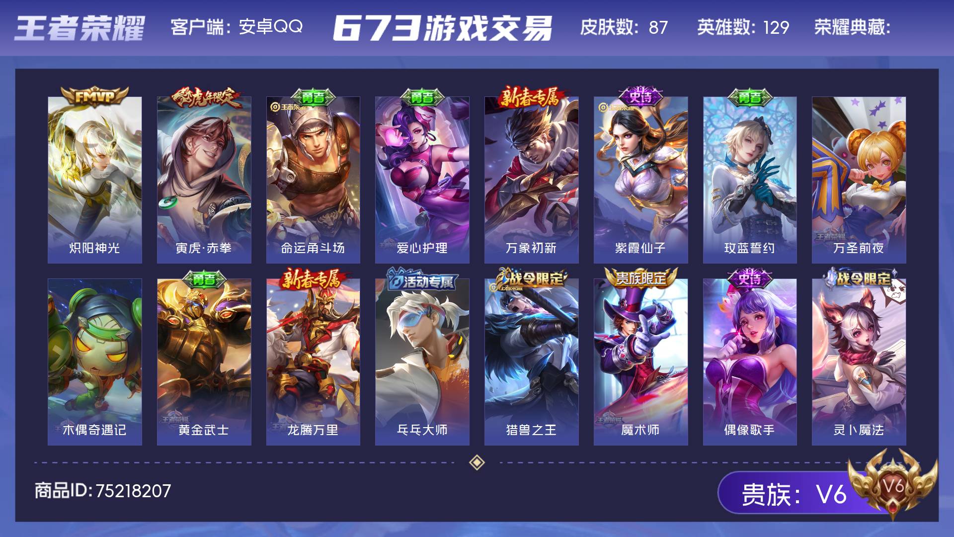 V6 皮肤87 英雄129 永恒钻石 传说2 其他皮肤91