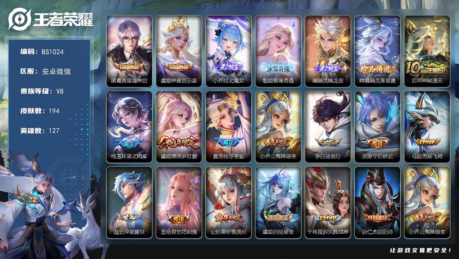 V8-荣耀黄金II段位-127英雄-194皮肤-2典藏皮肤-3无双