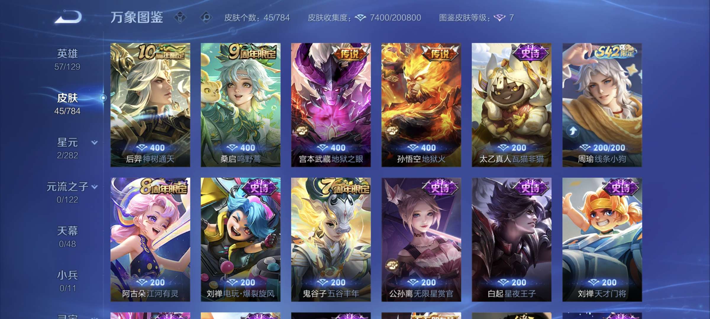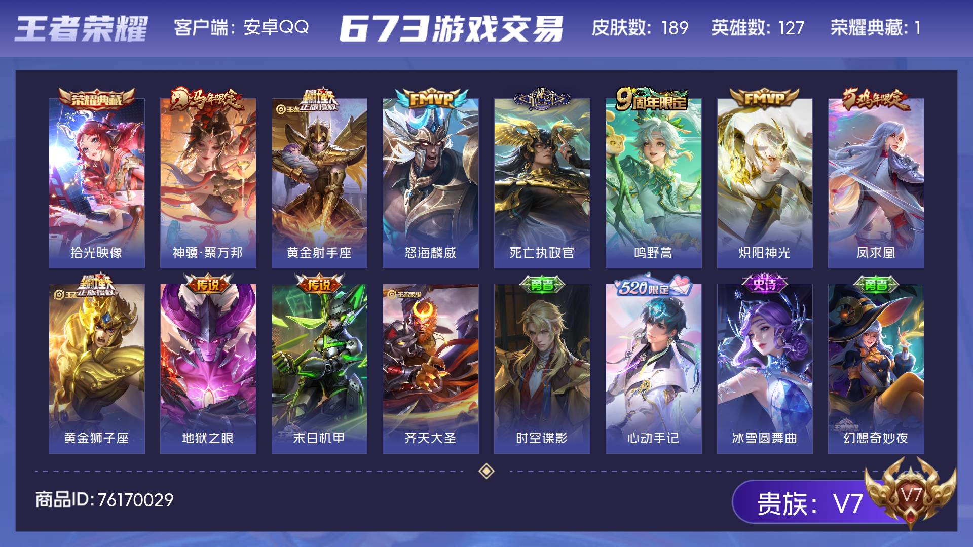 V7-最强王者段位-128英雄-323皮肤-2典藏皮肤-1珍品传说