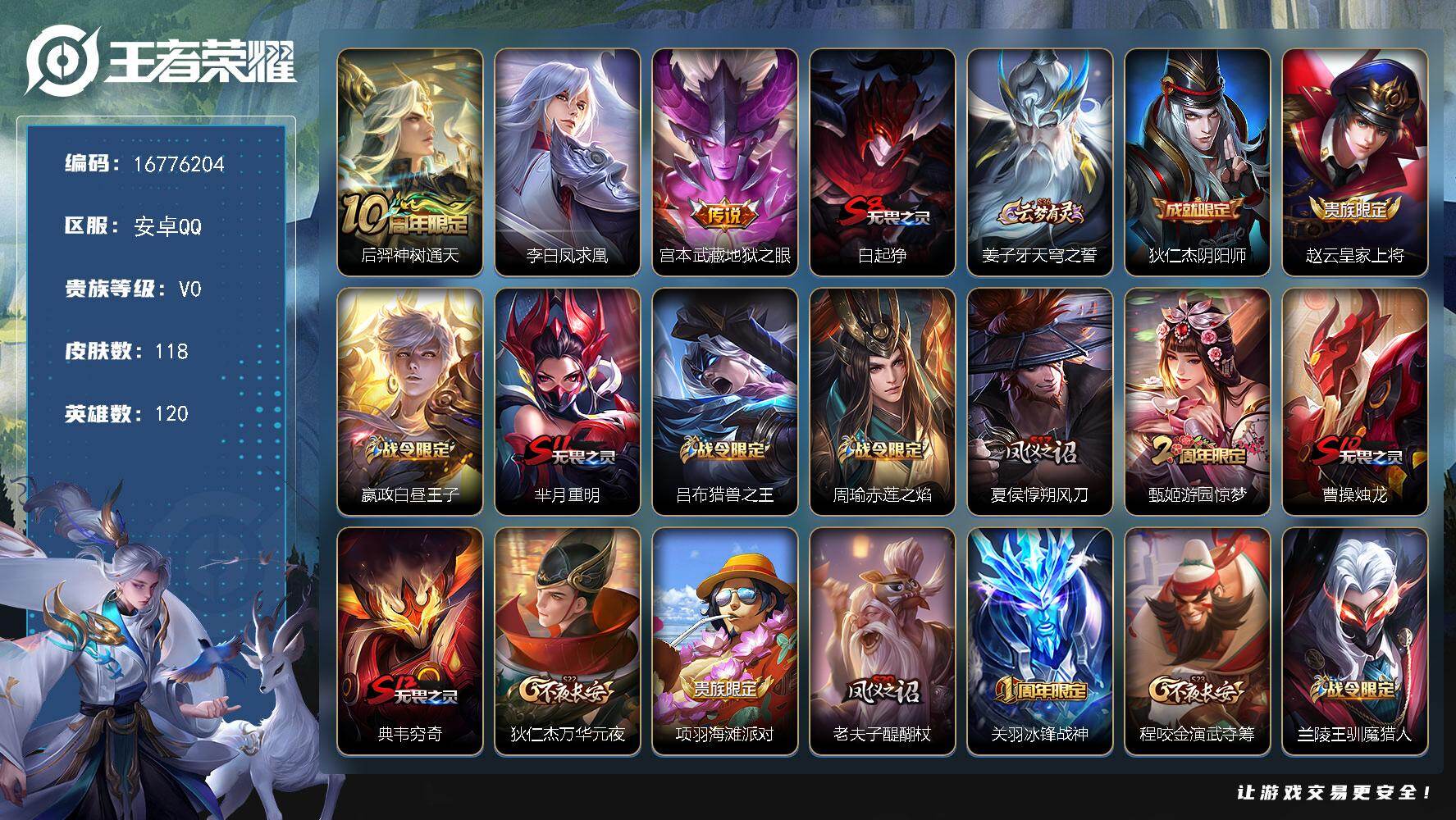 【16776204】安卓Q-V0-荣耀黄金II段位-120英雄-118皮肤-3