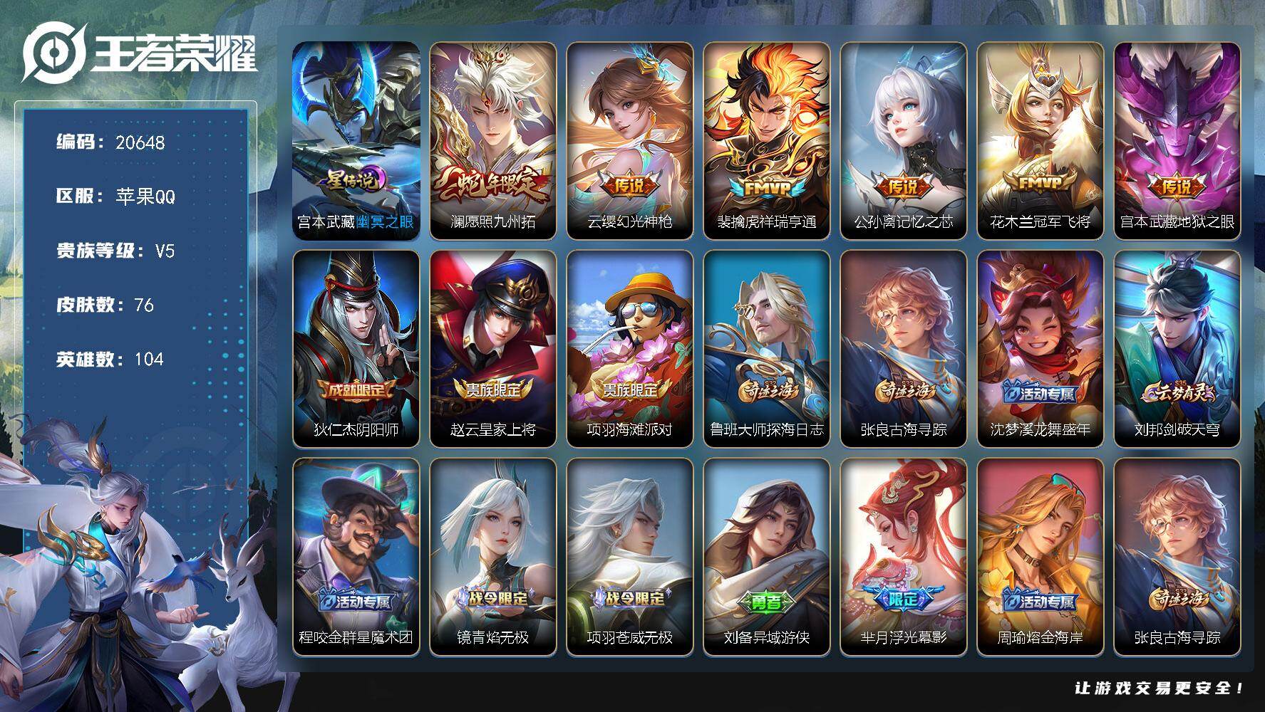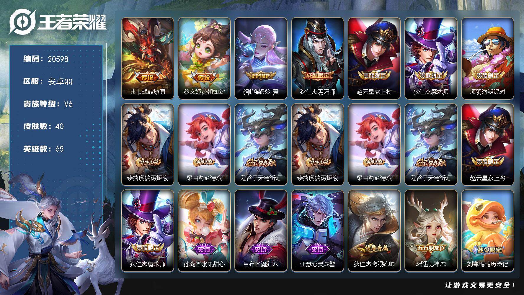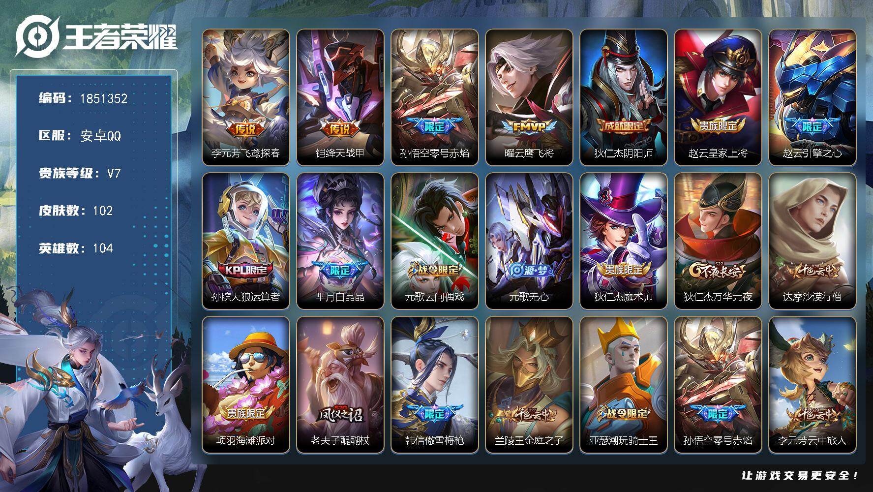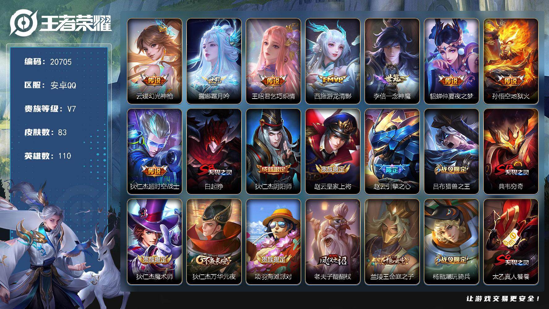 海月市标 虞姬市标 安卓Q-V7-最强王者段位-122英雄-109皮肤-1典藏