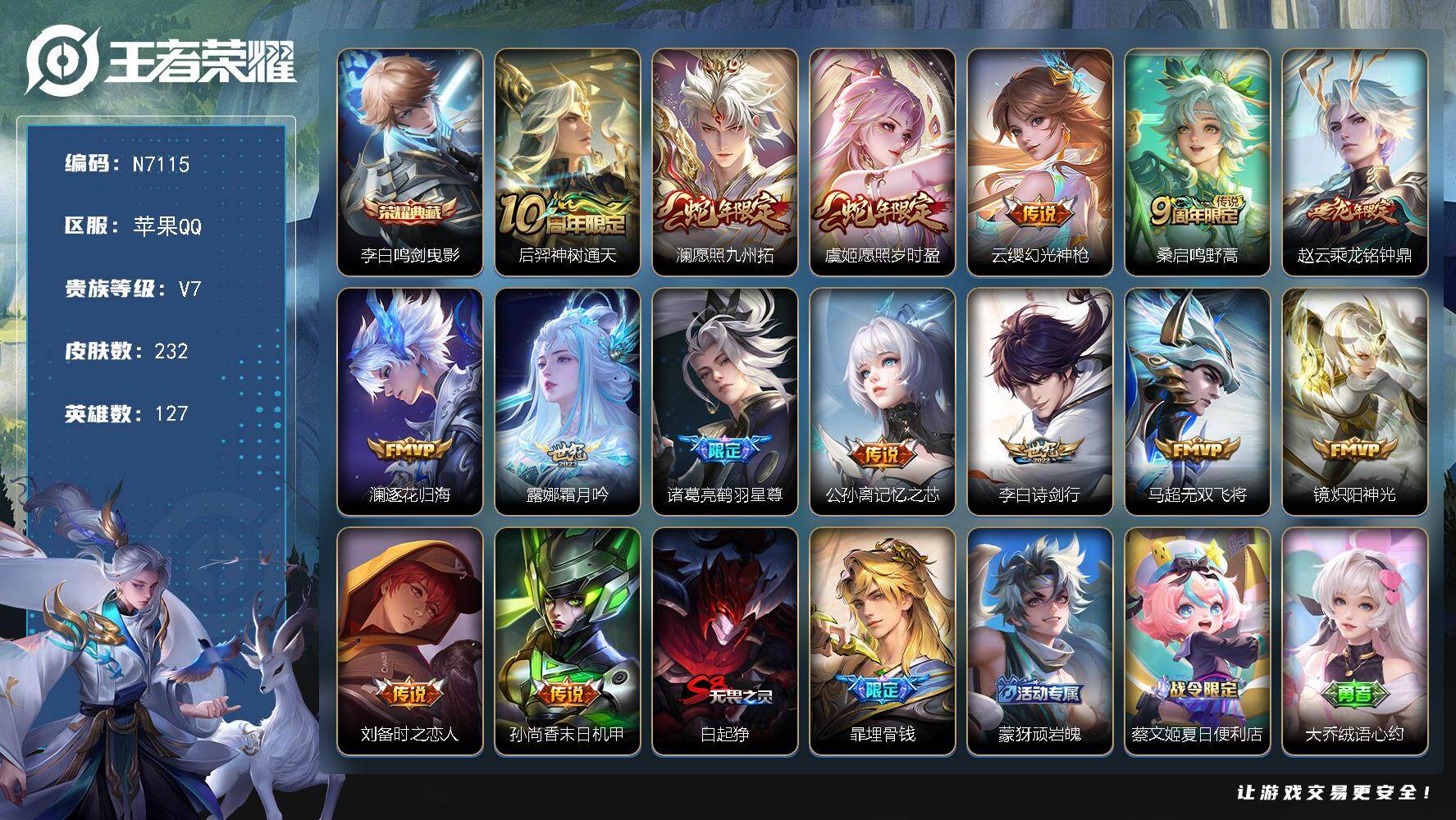 苹果Q-V6-永恒钻石II段位-127英雄-232皮肤-1典藏皮肤-15传说-7