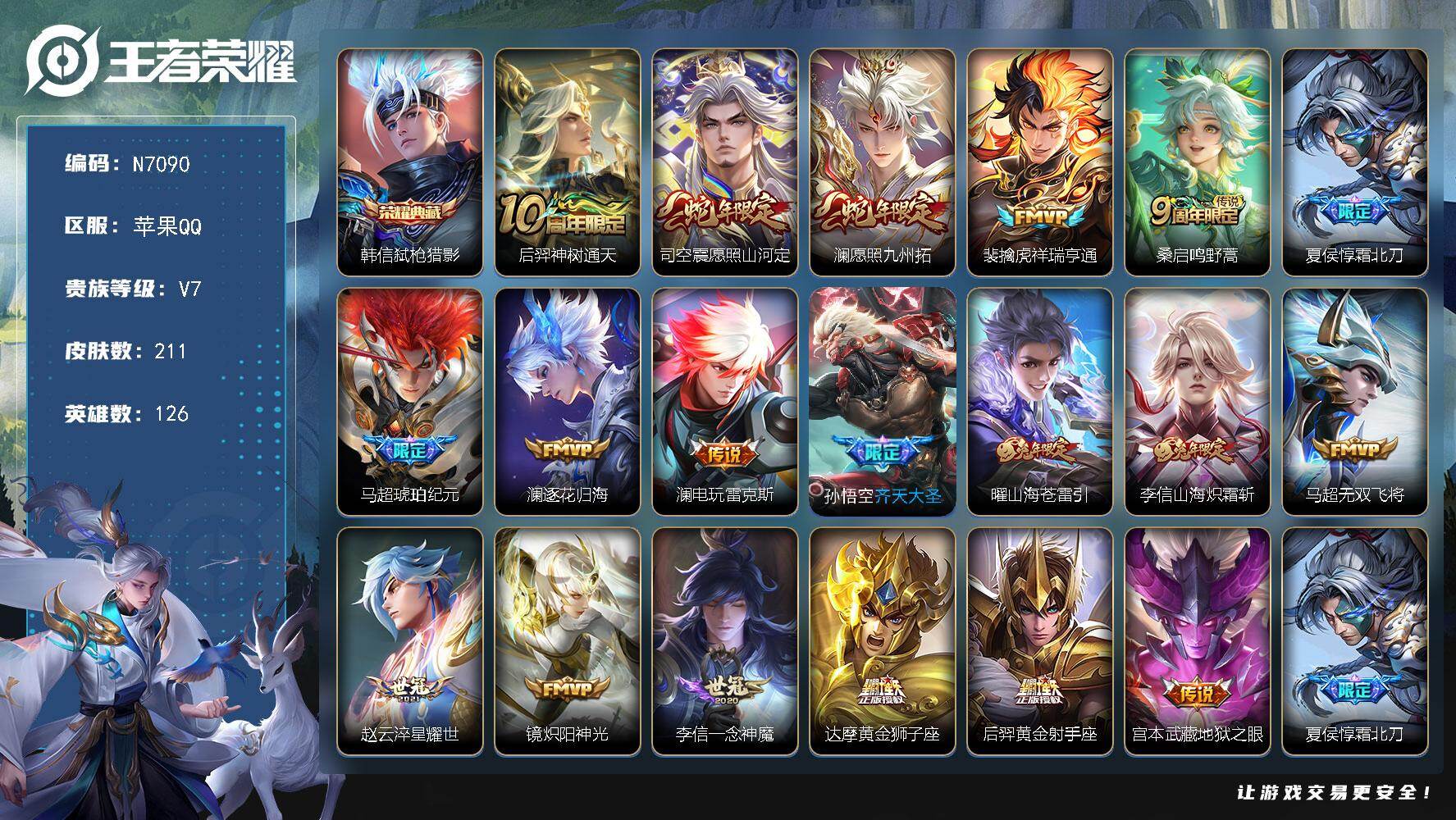 苹果Q-V7-永恒钻石IV段位-126英雄-211皮肤-1典藏皮肤-19传说-6