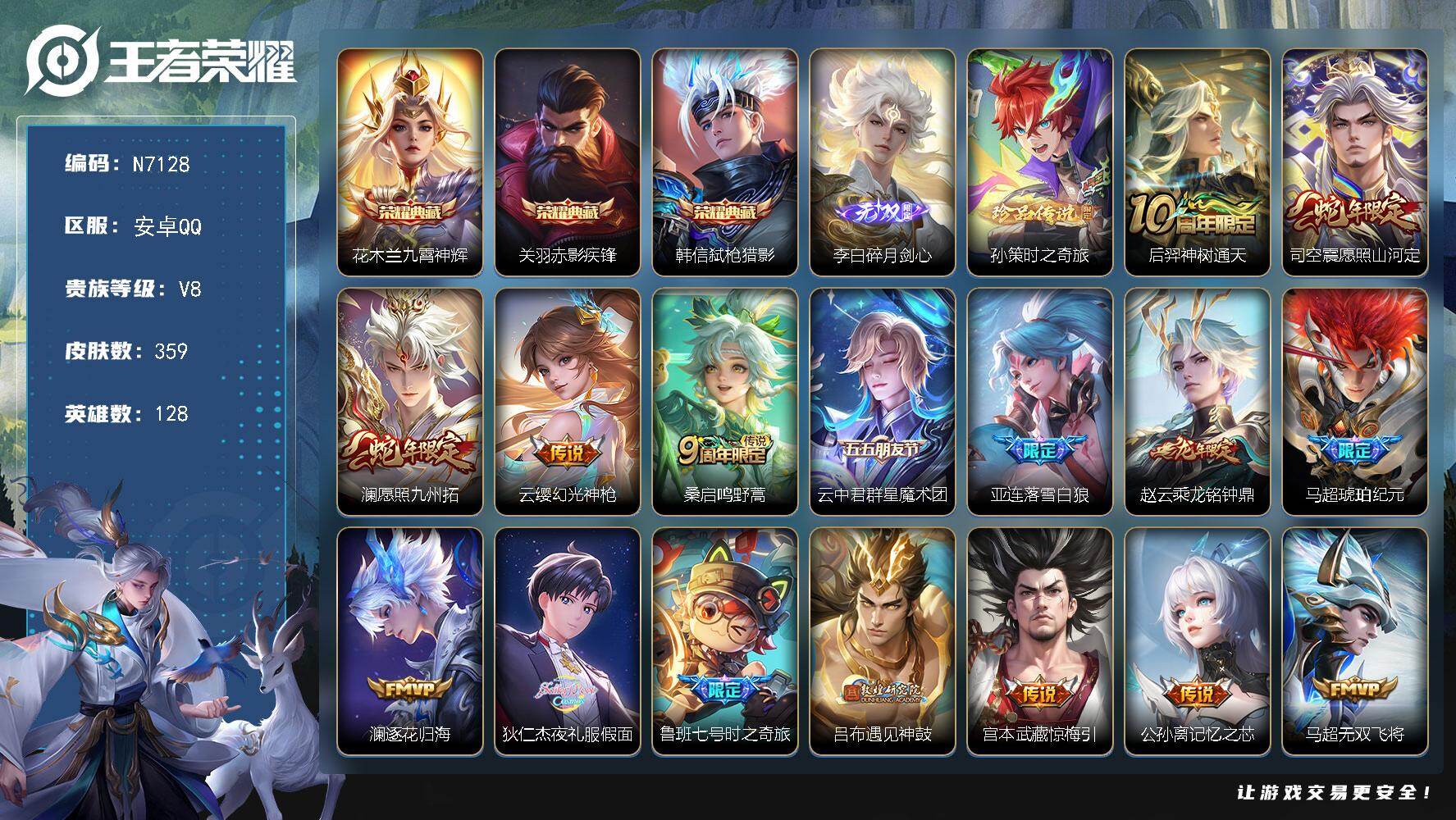 V7-至尊星耀III段位-128英雄-359皮肤-3典藏皮肤-1无双
