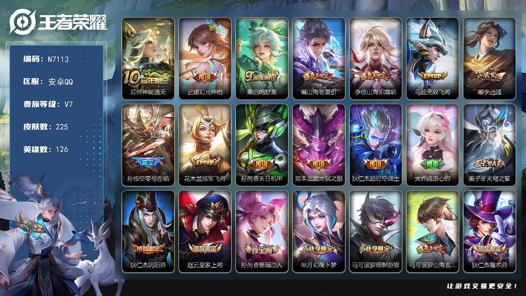 安卓Q-V7-最强王者段位-126英雄-225皮肤-12传说-49史诗【英雄全