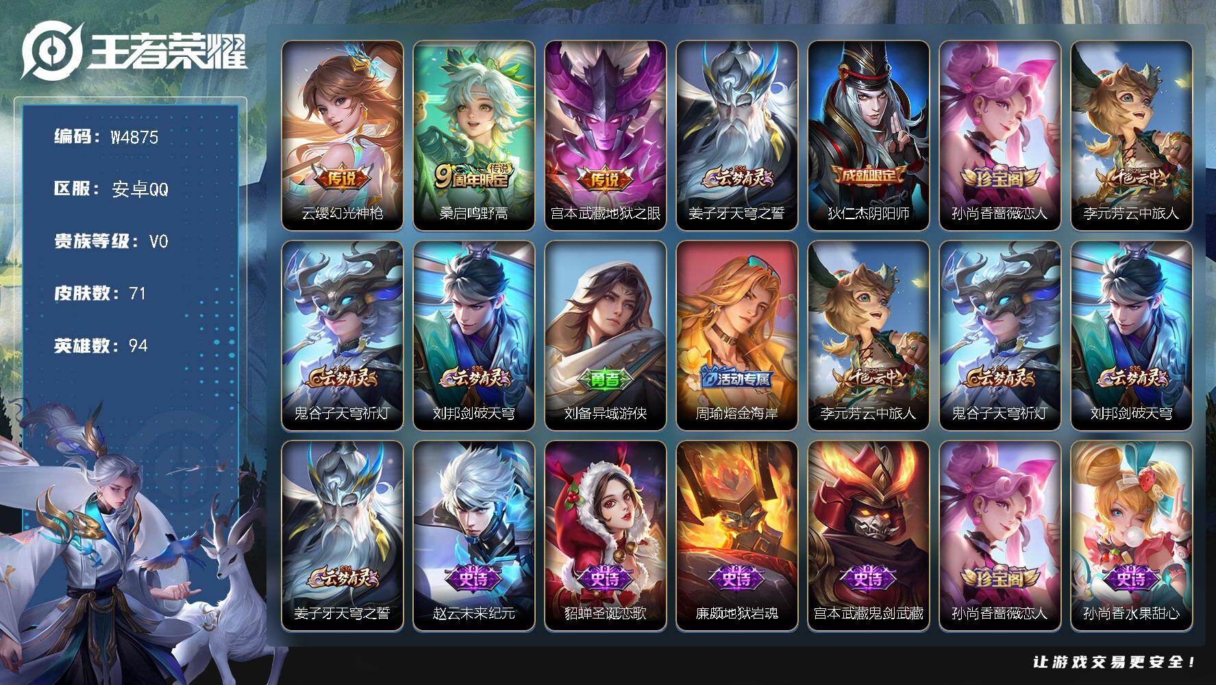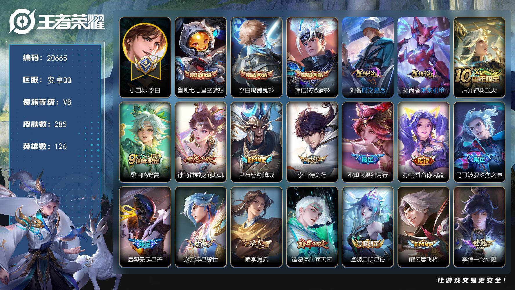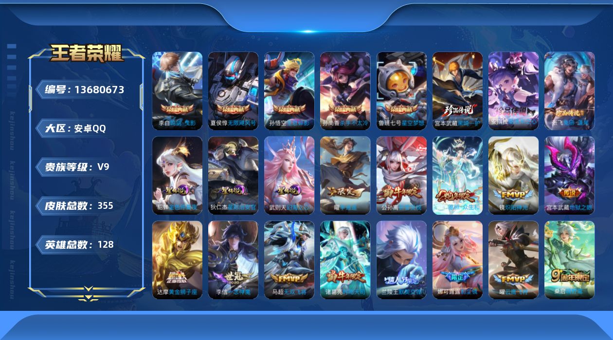 安卓QQ/至尊星耀/195皮肤/122英雄/1典藏/0珍品