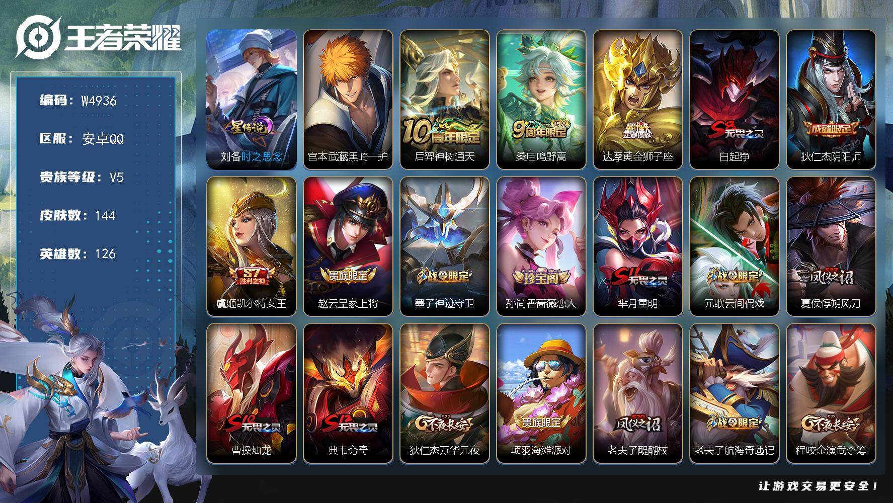 【W4936】宫本武藏黑崎一护-安卓QQ-无二次-贵5-126英雄-144皮肤