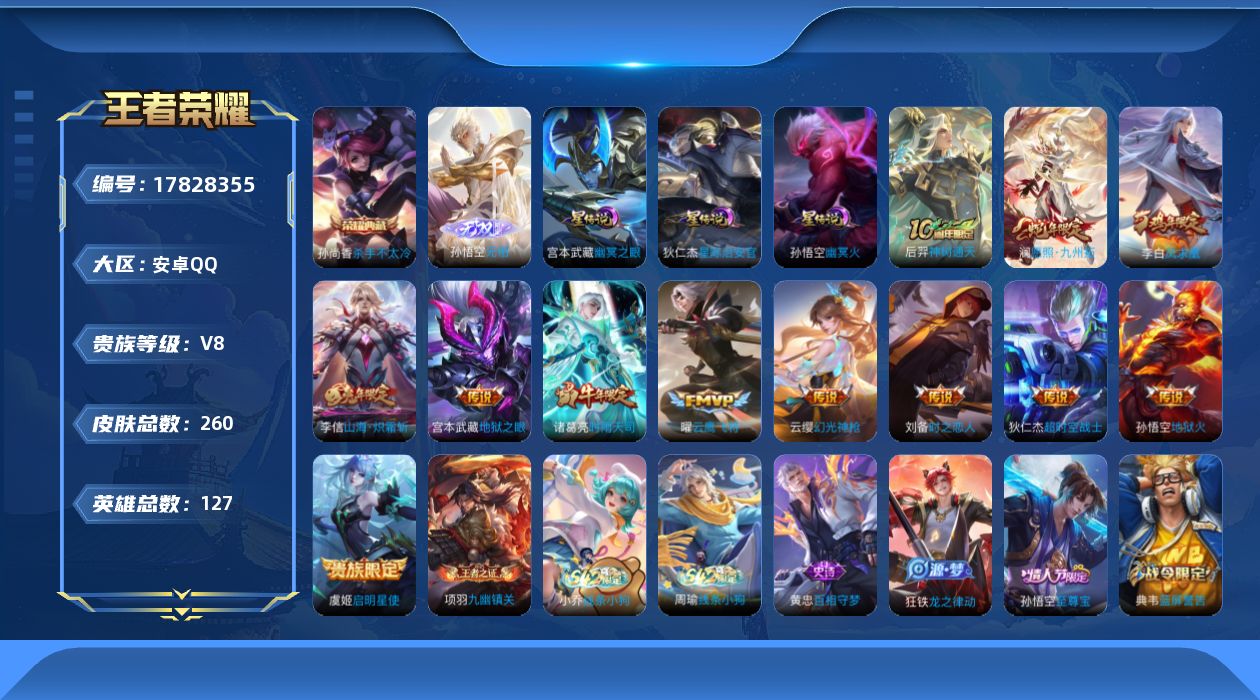 二五一七五五一_[王者荣耀]V21典藏1传说4史诗22皮肤至尊星耀I