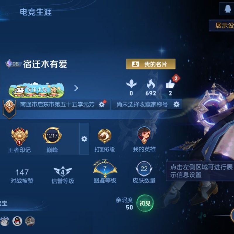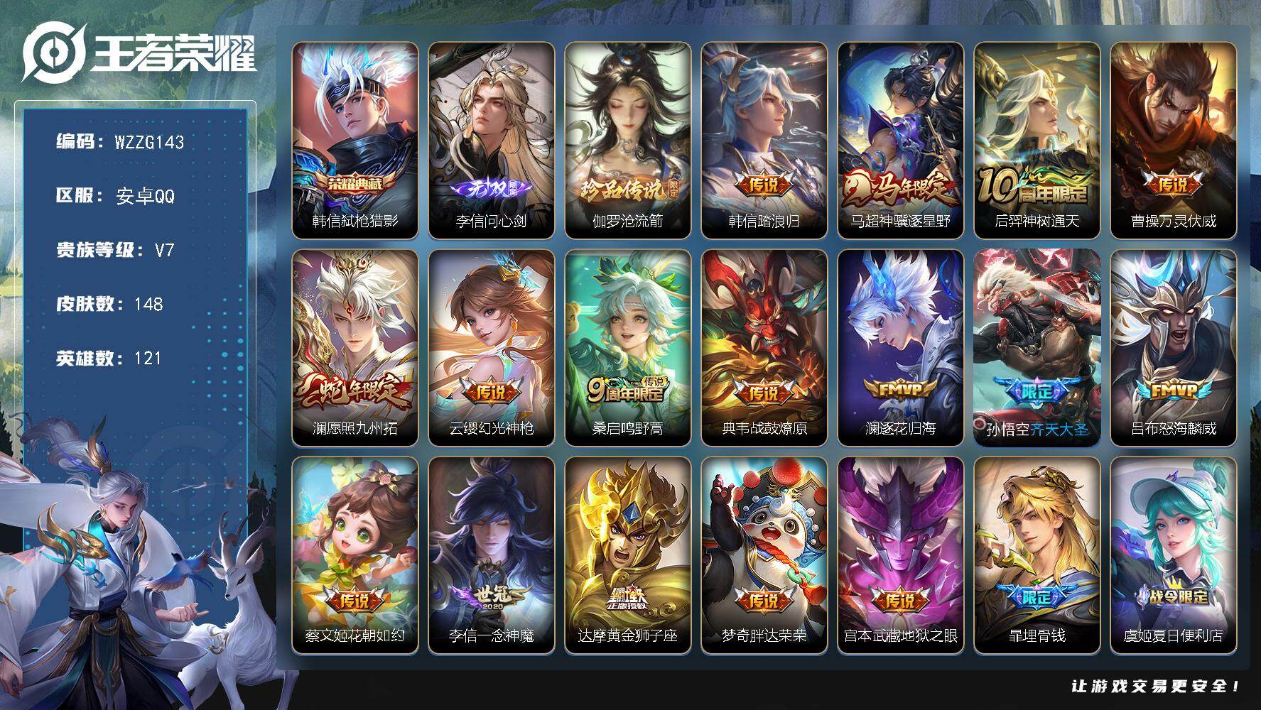 贵族7/皮肤148/典藏1/传说16/史诗42/英雄