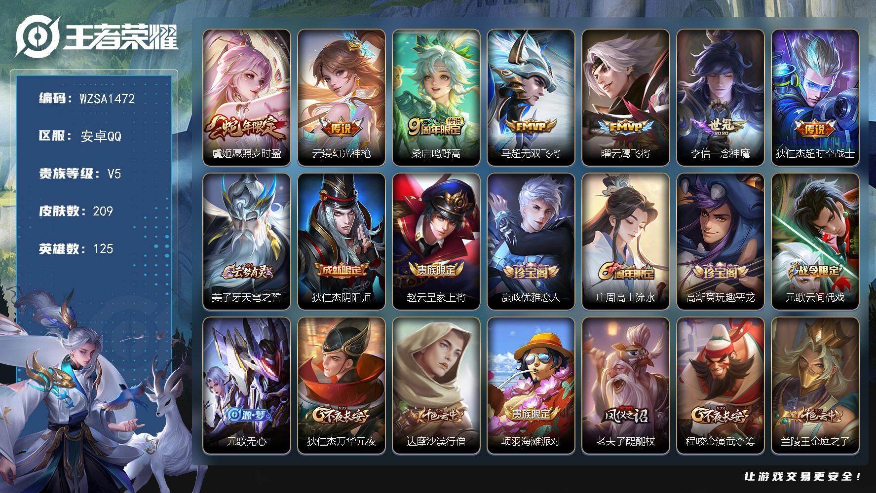 贵族5/皮肤209/传说7/史诗50/英雄125/虞姬-愿照