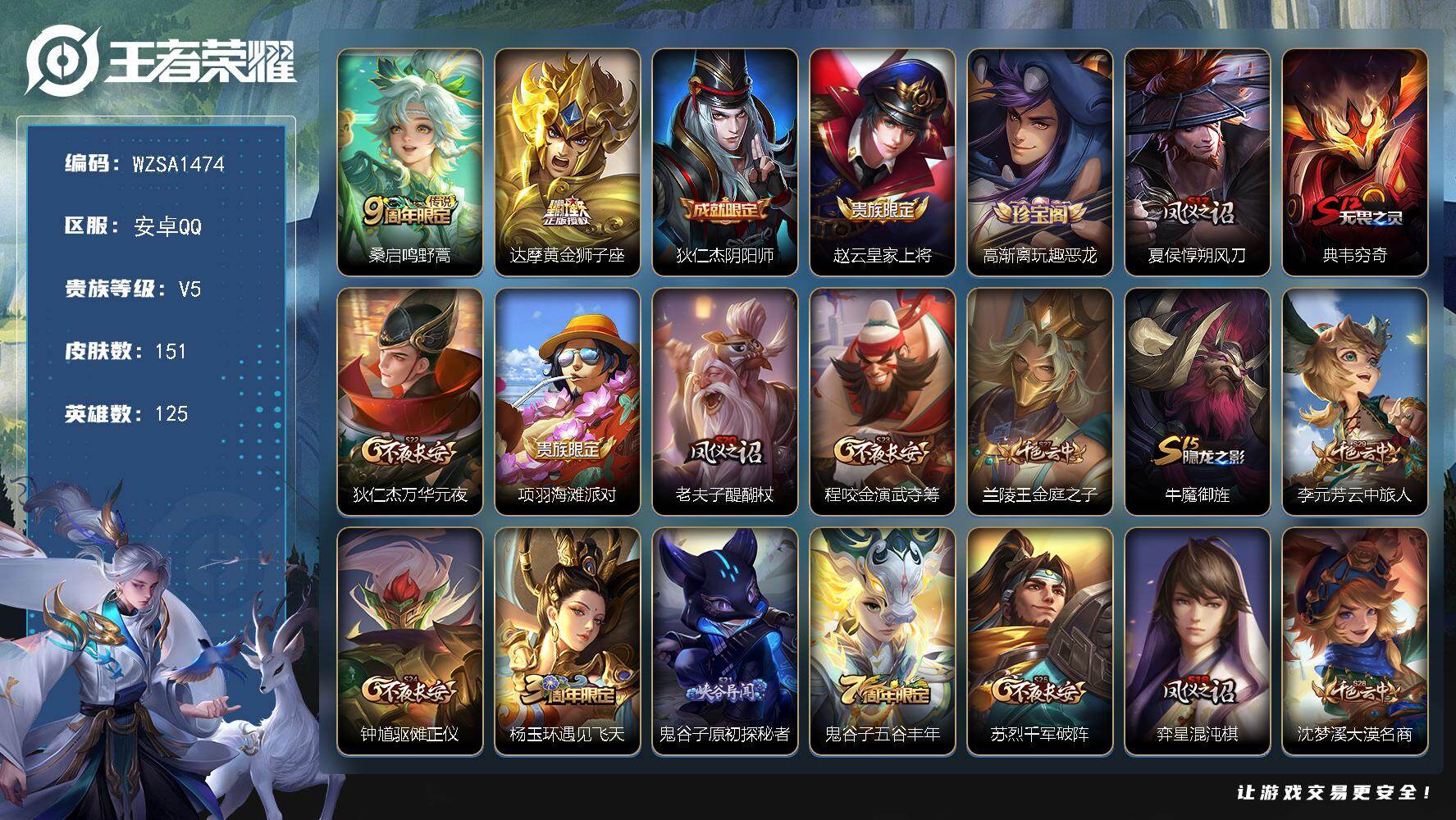 贵族5/皮肤151/传说2/史诗33/英雄125/桑启-鸣野