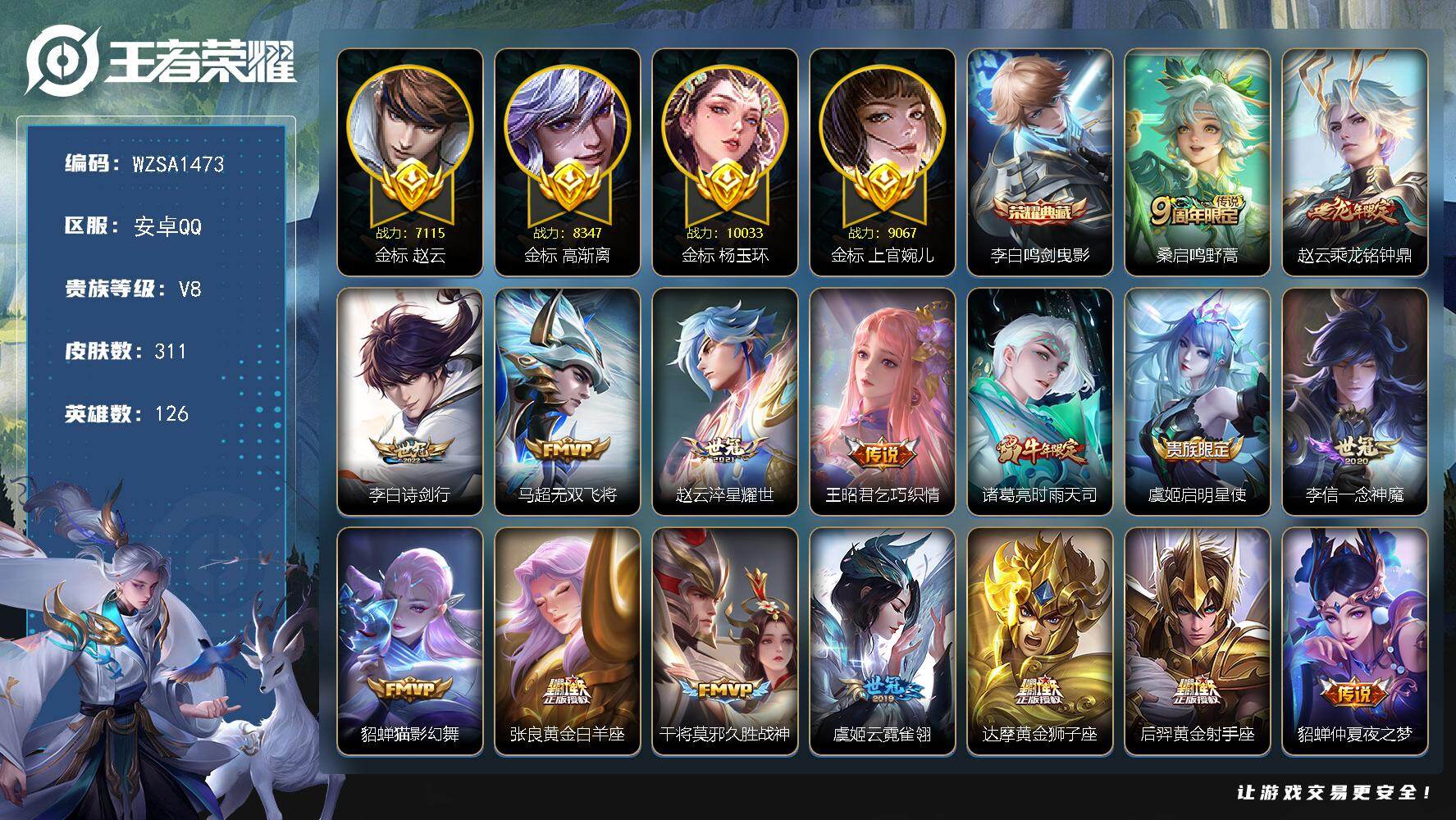 128英雄-312皮肤-安卓QQ 可二次/v8质量女号/非