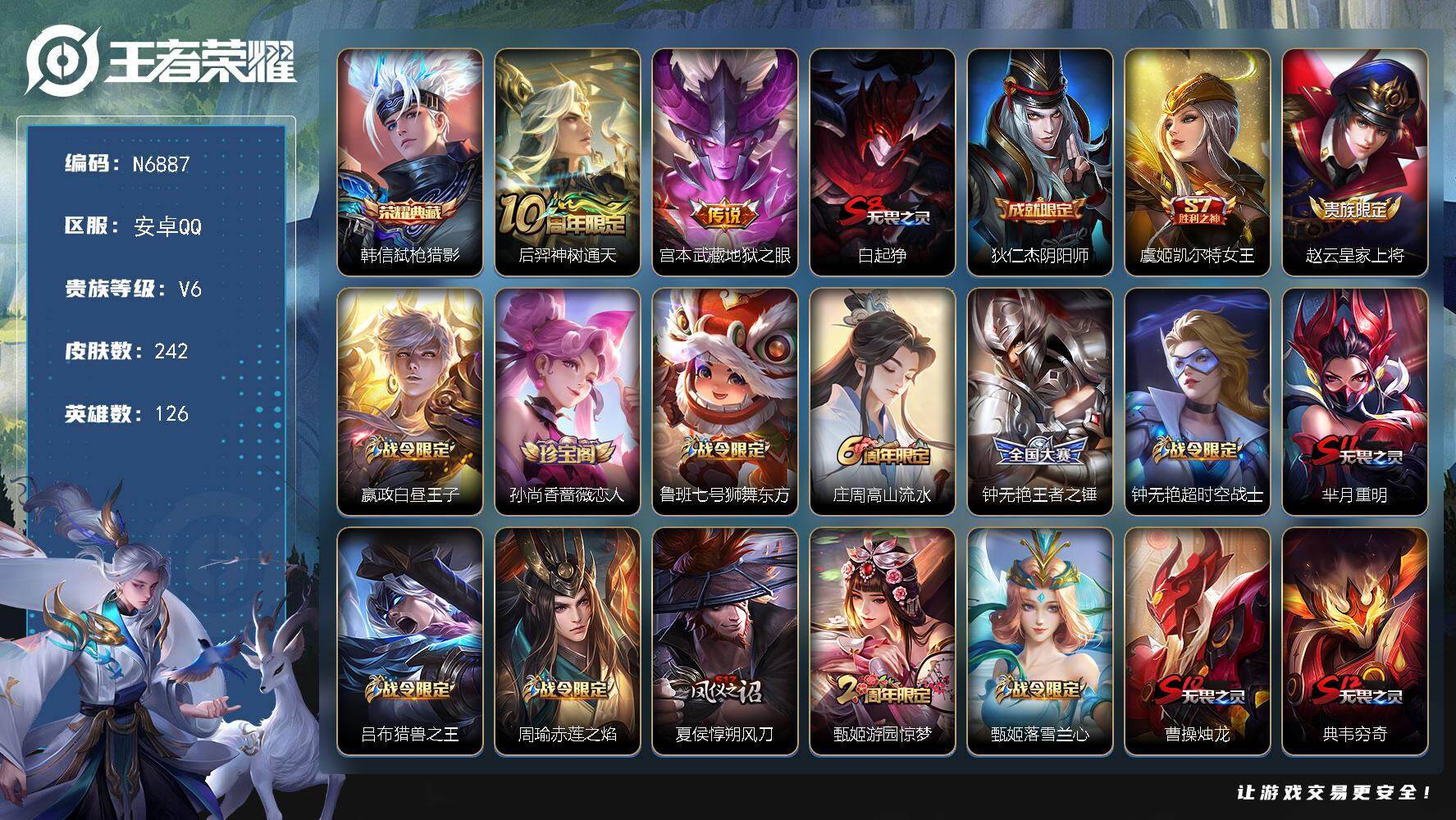 V5-最强王者段位-126英雄-242皮肤-1典藏皮肤-2传说-72史诗