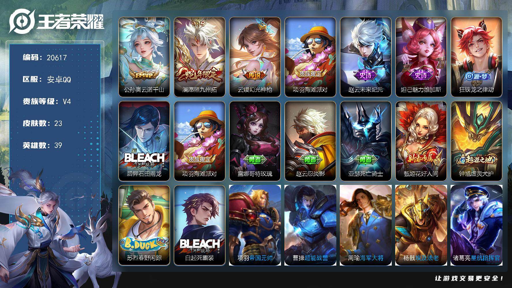 【145皮肤1水晶1星元4传说可秒换绑】安卓QQ-126英