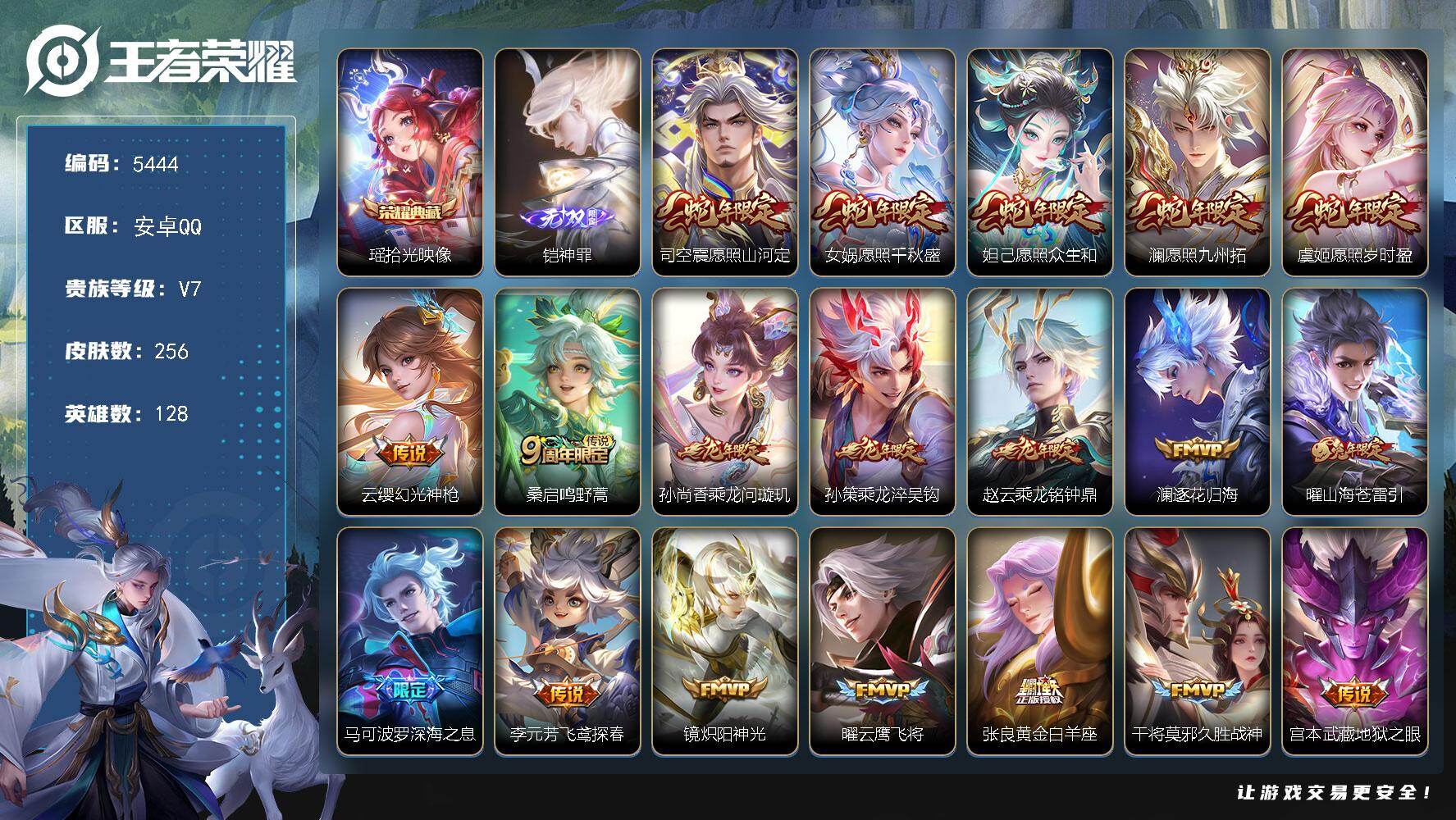 贵族7-贵族积分37005-255皮1典藏19传说1无双 安卓手Q390区