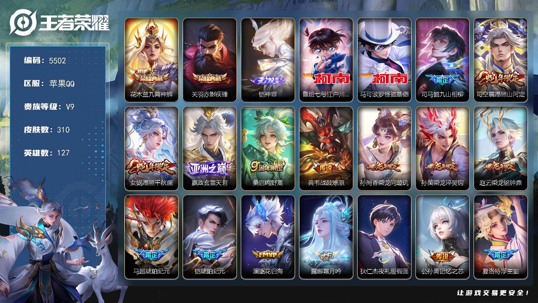 贵族9-贵族积分101304-310皮2典藏28传说1无双2珍品传说 苹果手Q1