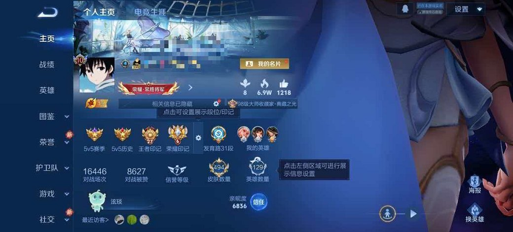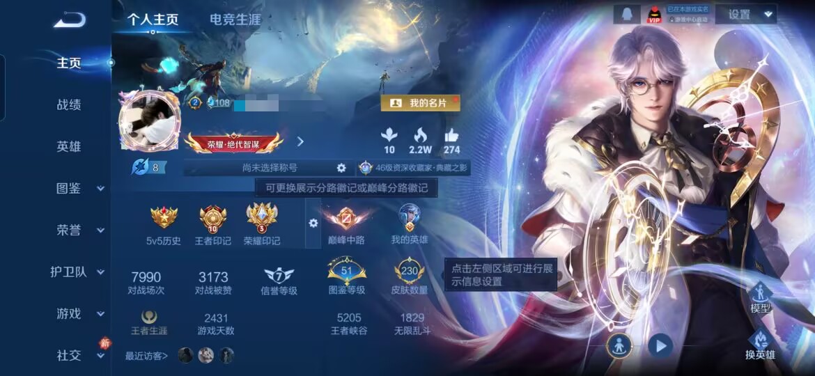 韩信典藏!皮肤数量269印记总数7V7最强王者暂时不可修改账