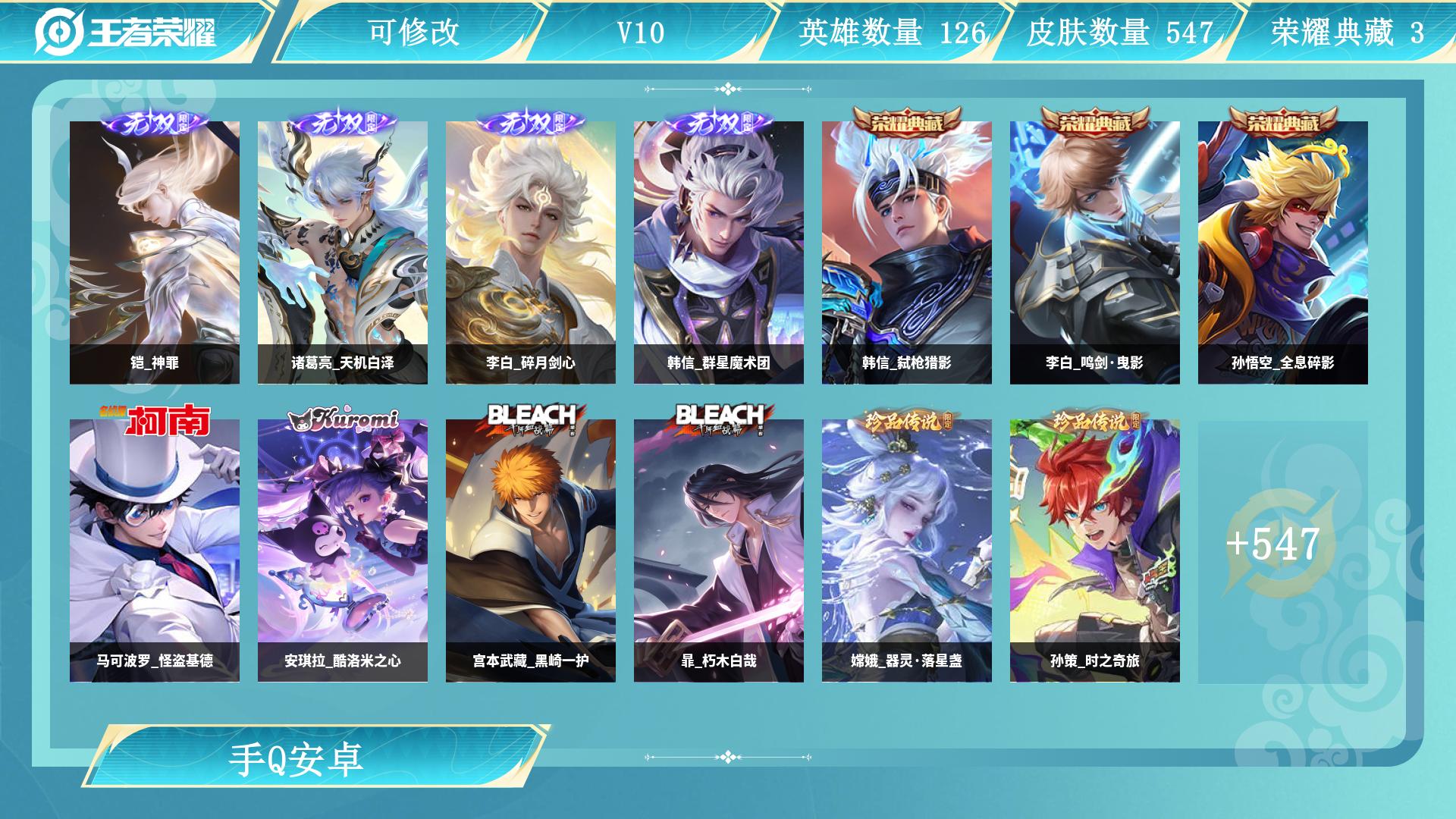 黑崎+天机双天幕!皮肤数量547印记总数19V10至圣王者可
