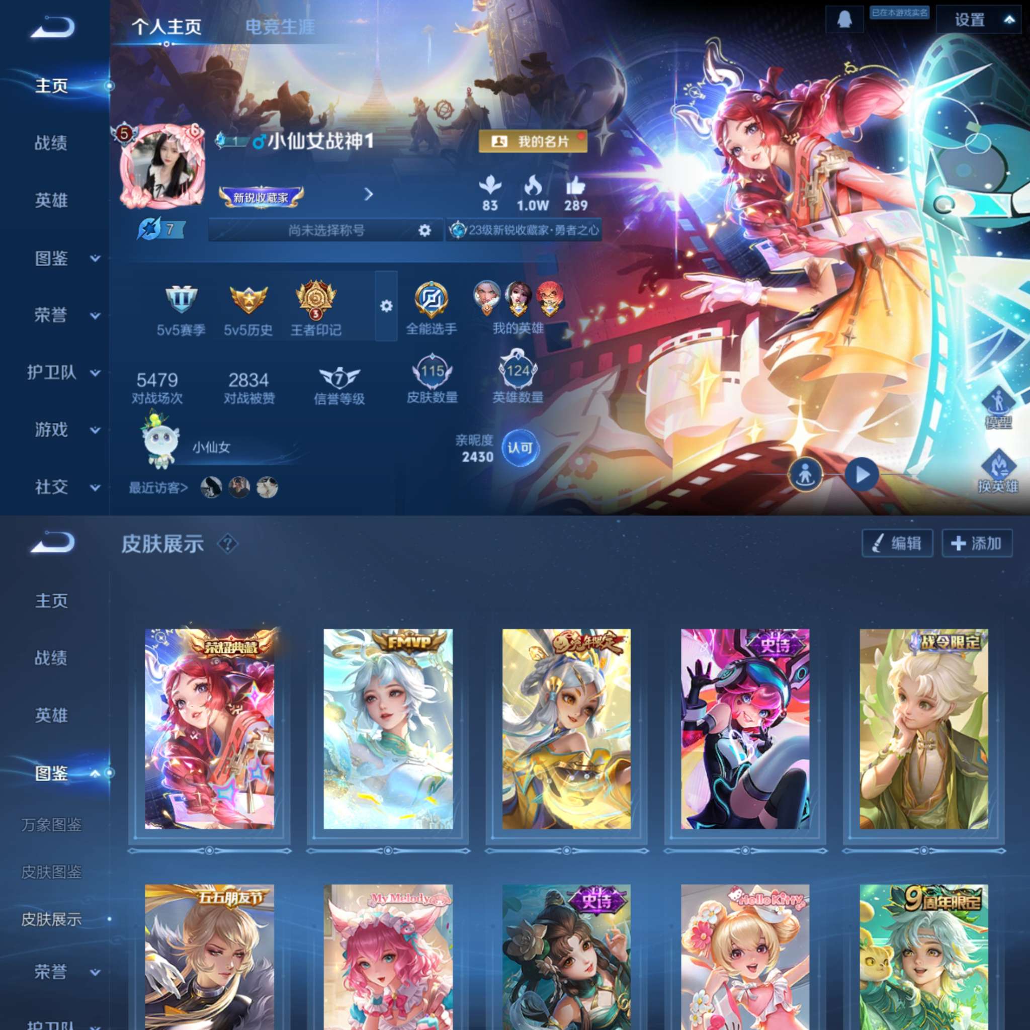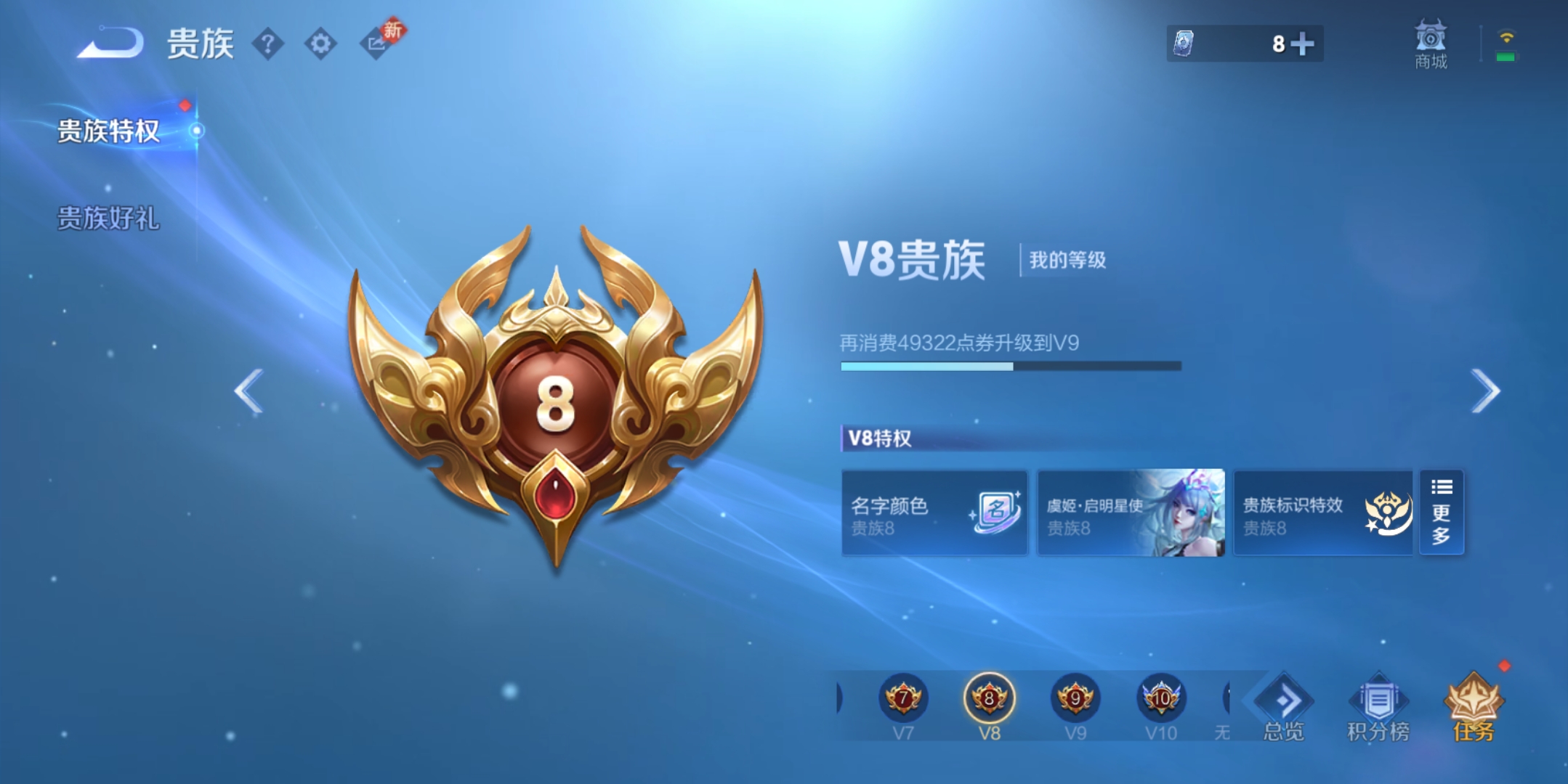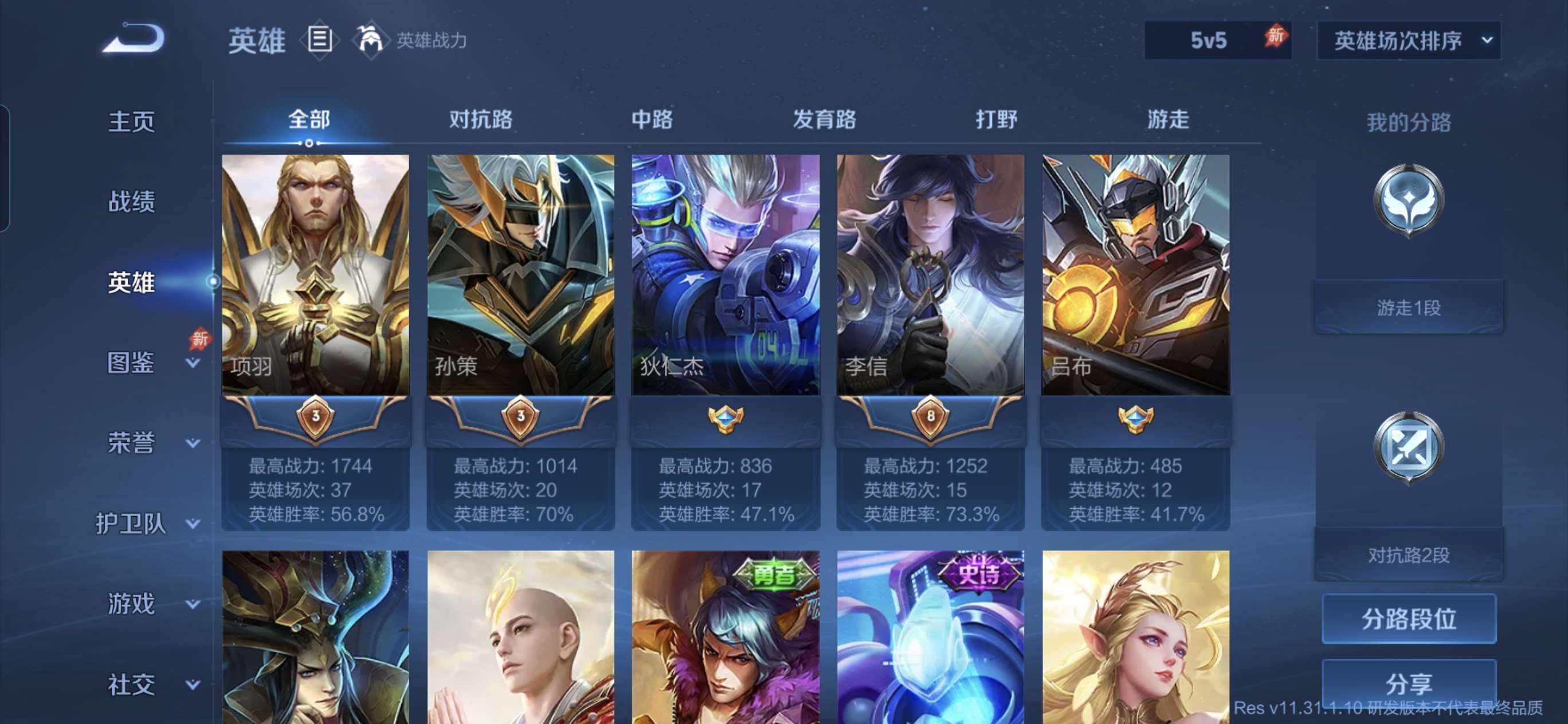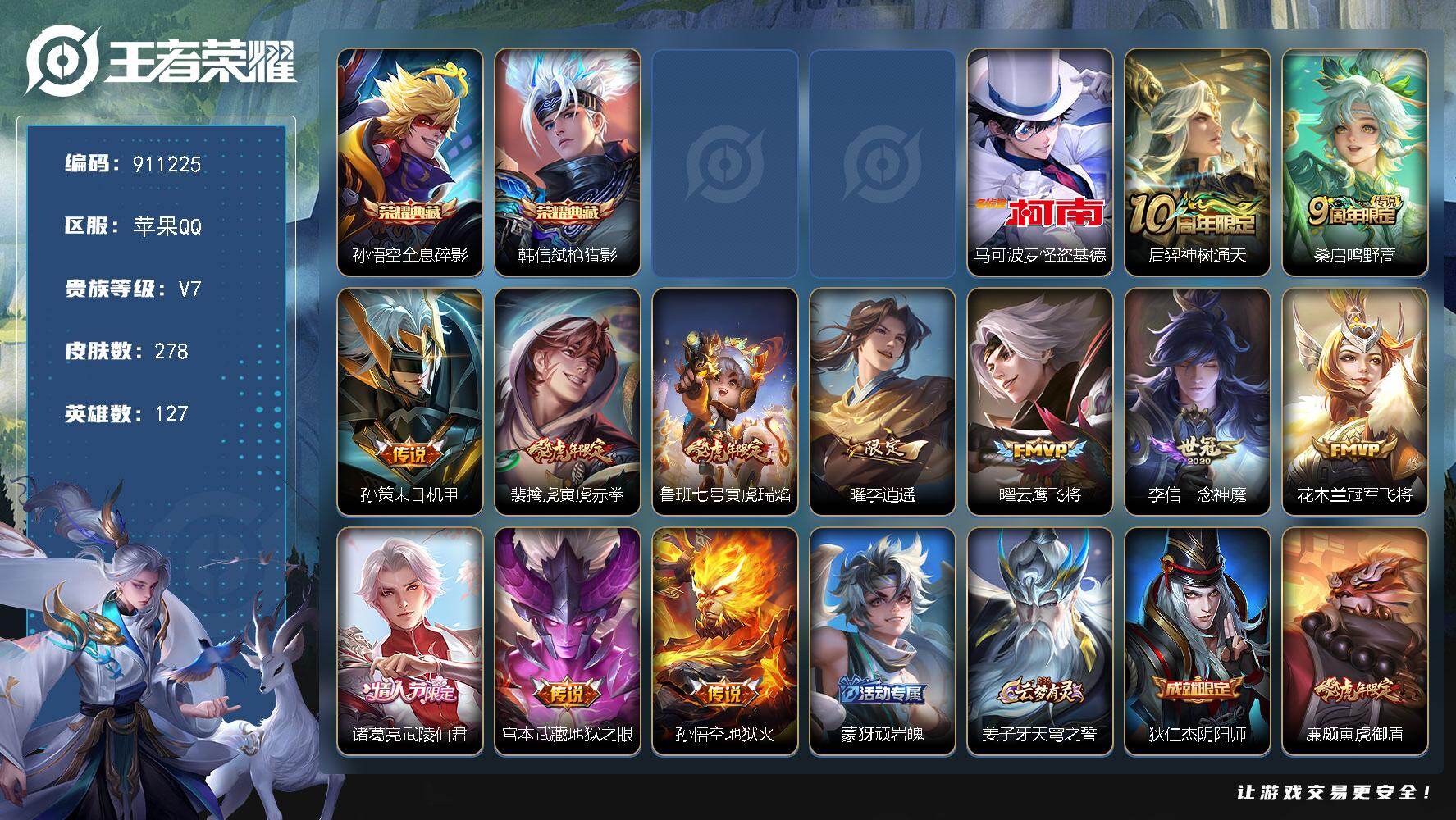 贵族等级: V7 英雄数: 127 皮肤数: 278