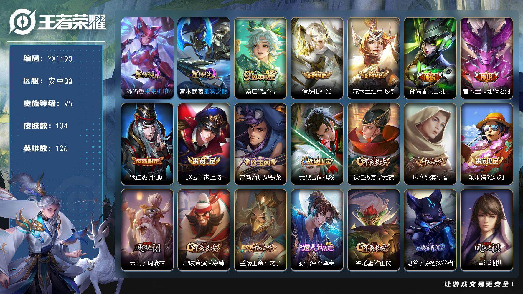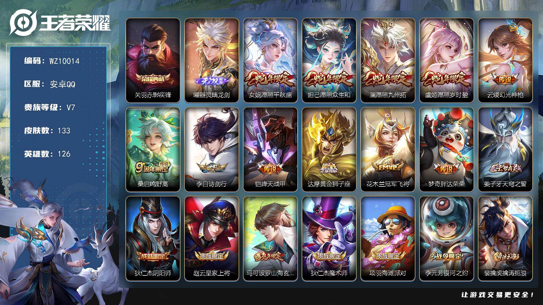 安卓Q-V7-至尊星耀III段位-126英雄-133皮肤-1典藏皮肤-1无双-
