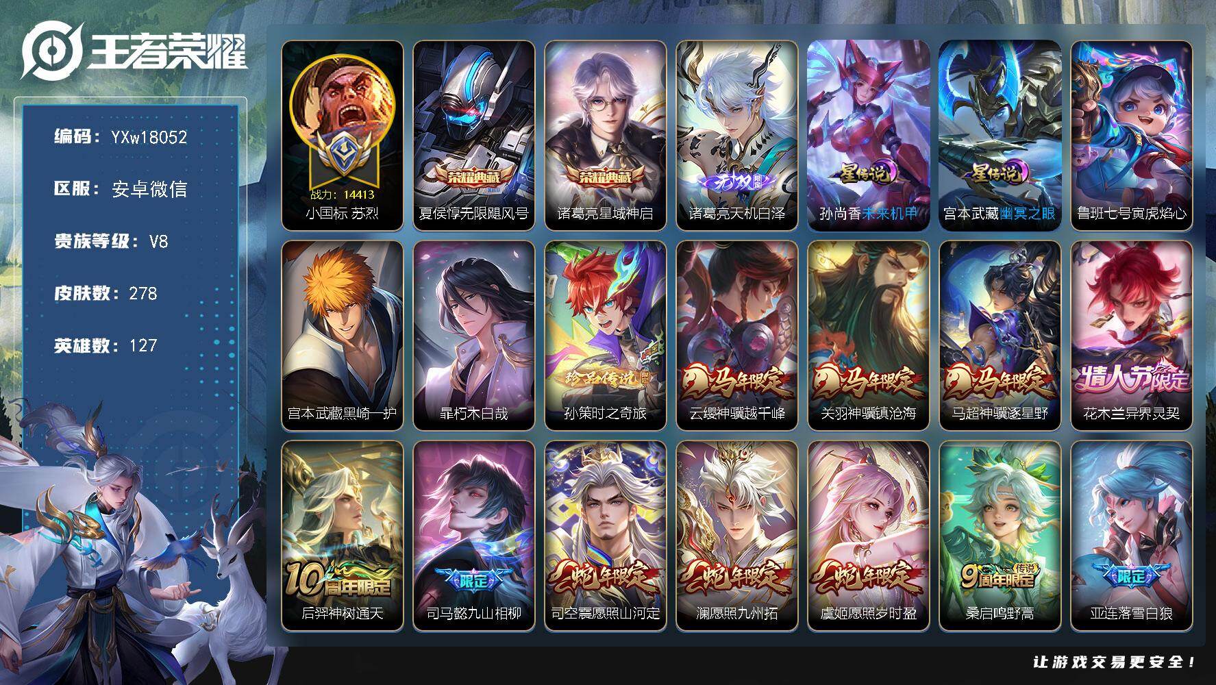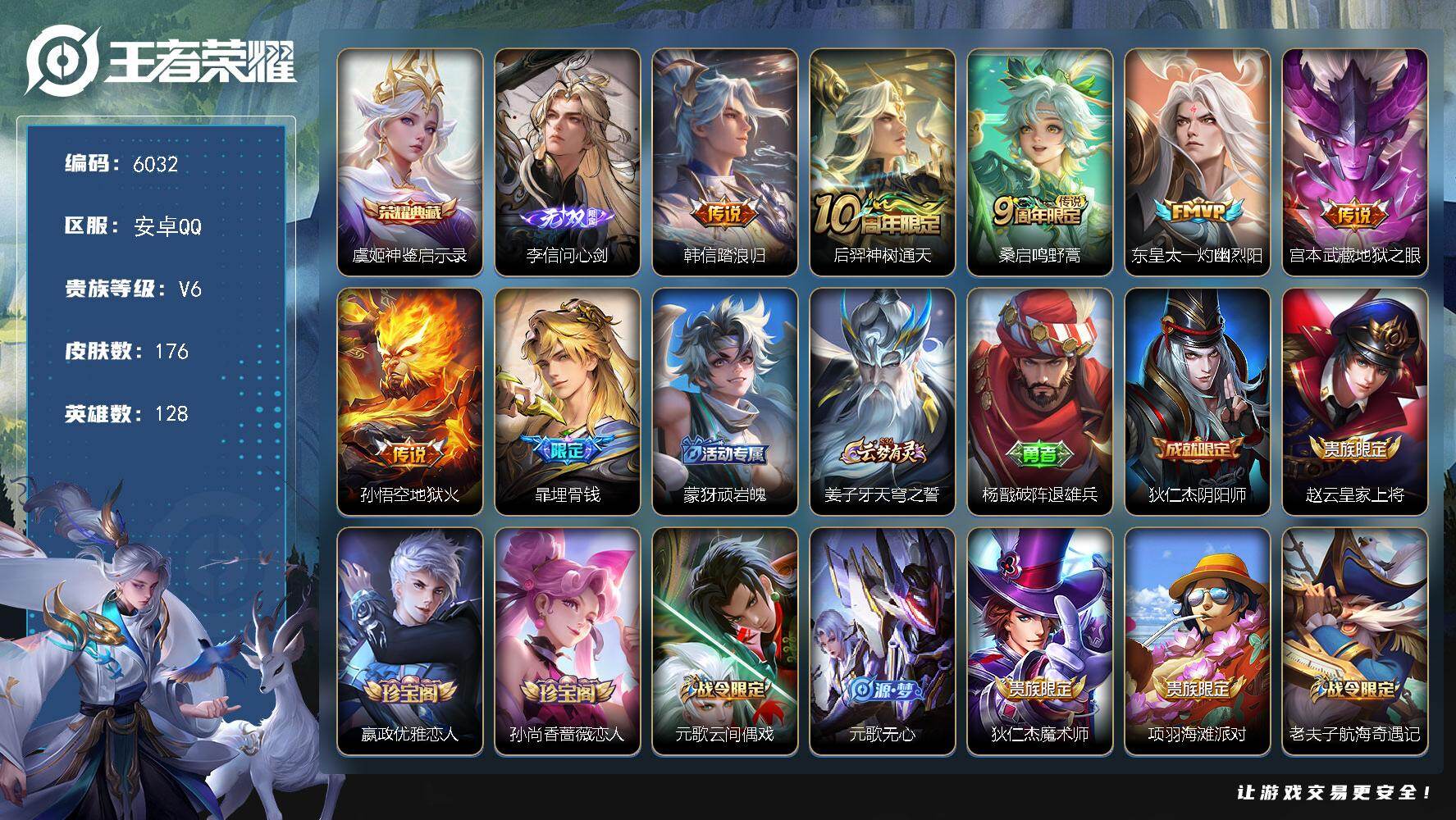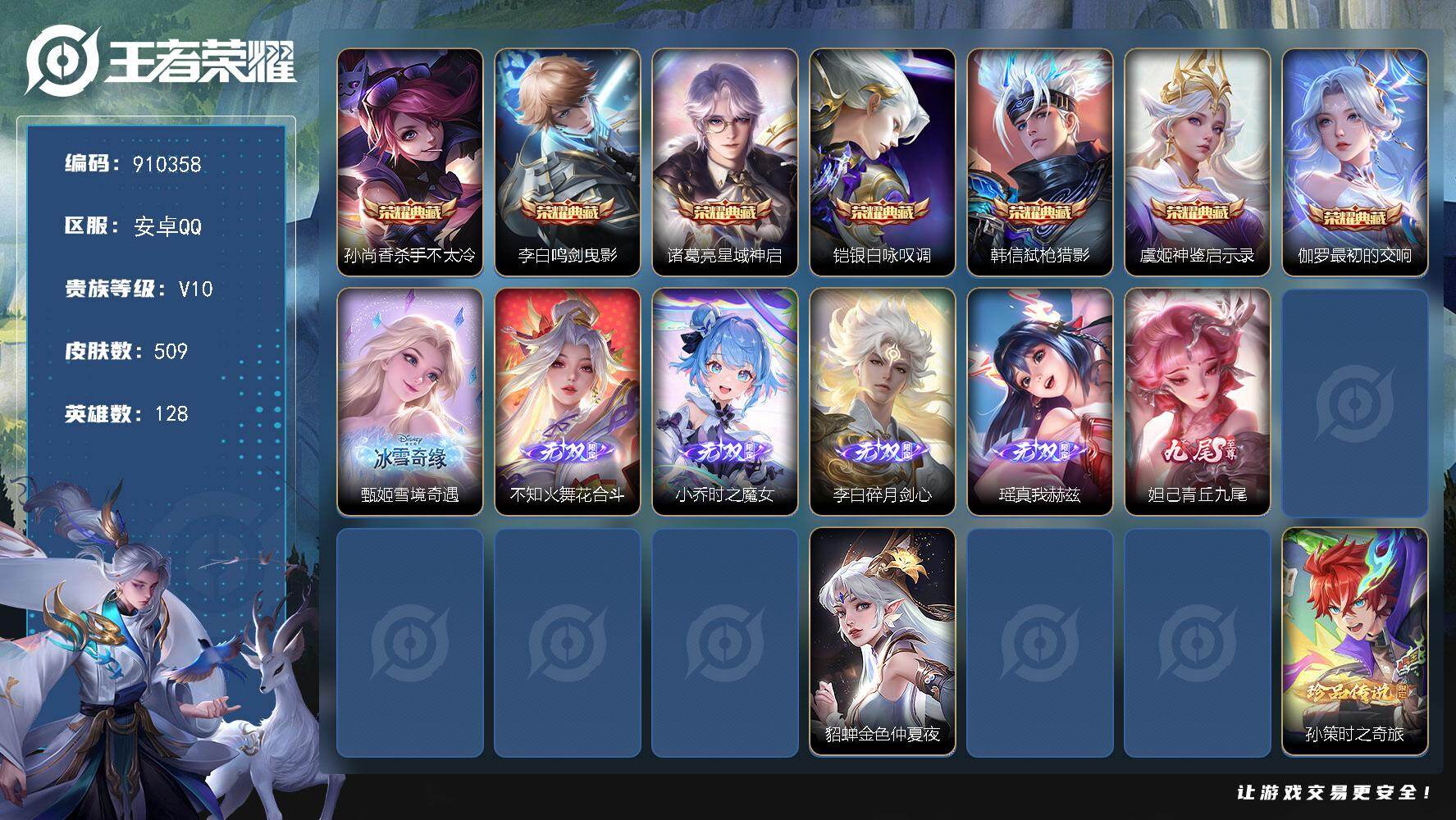 【V10 509皮肤7水晶6无双7星元4珍品68传说可秒换绑】安卓QQ-128英