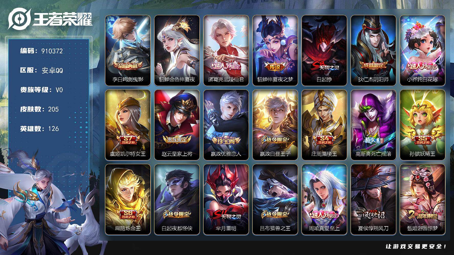 V0-永恒钻石II段位-126英雄-205皮肤-1典藏皮肤-2传说