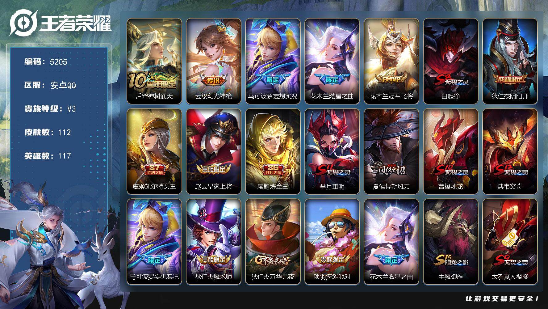 安卓Q-V3-最强王者段位-117英雄-112皮肤-5传说-23史诗【传说皮