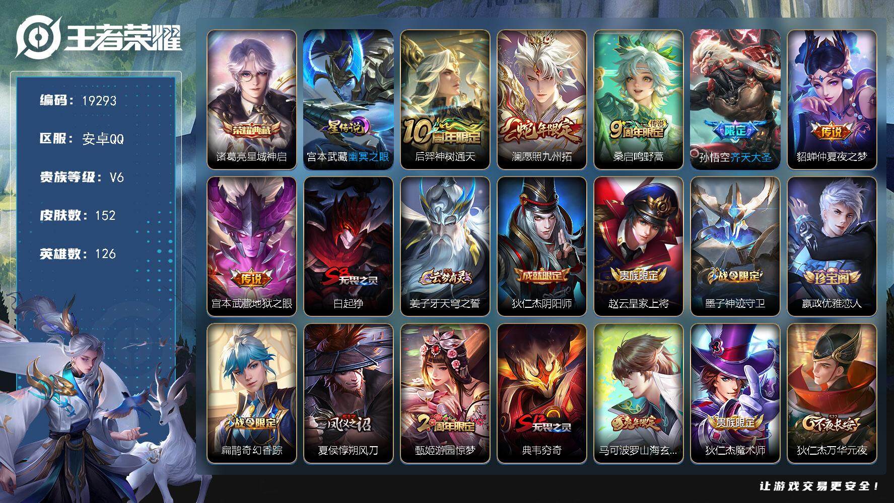 皮肤200 英雄126 至尊星耀 传说3 其他皮肤63-小茗冰红茶,账号还可以