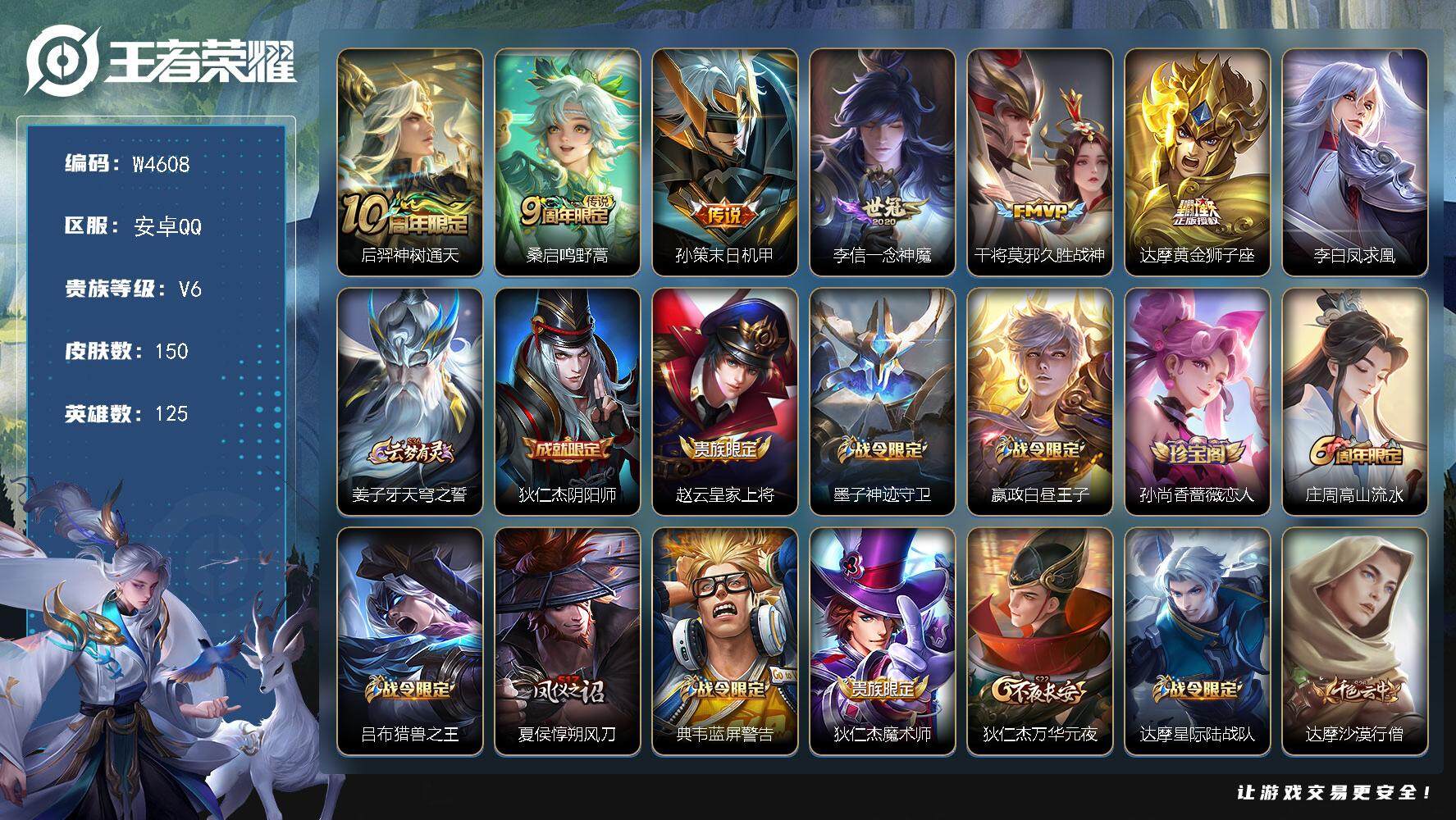 【W4608】1水晶未使用-安卓Q区-可二次-贵6-125英雄-150皮肤-1