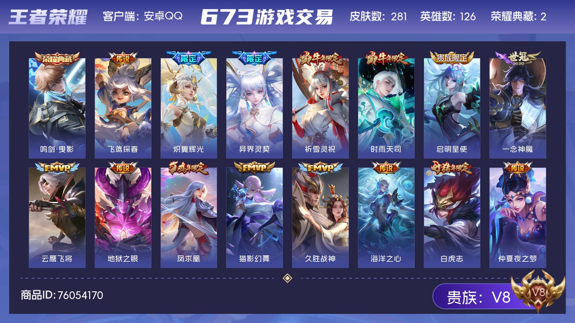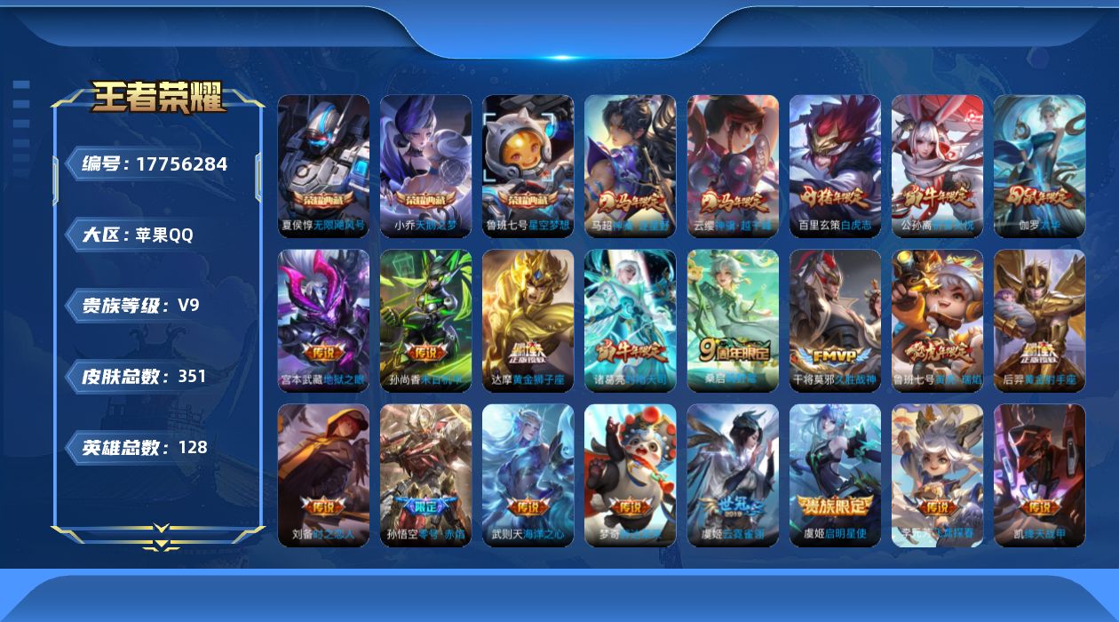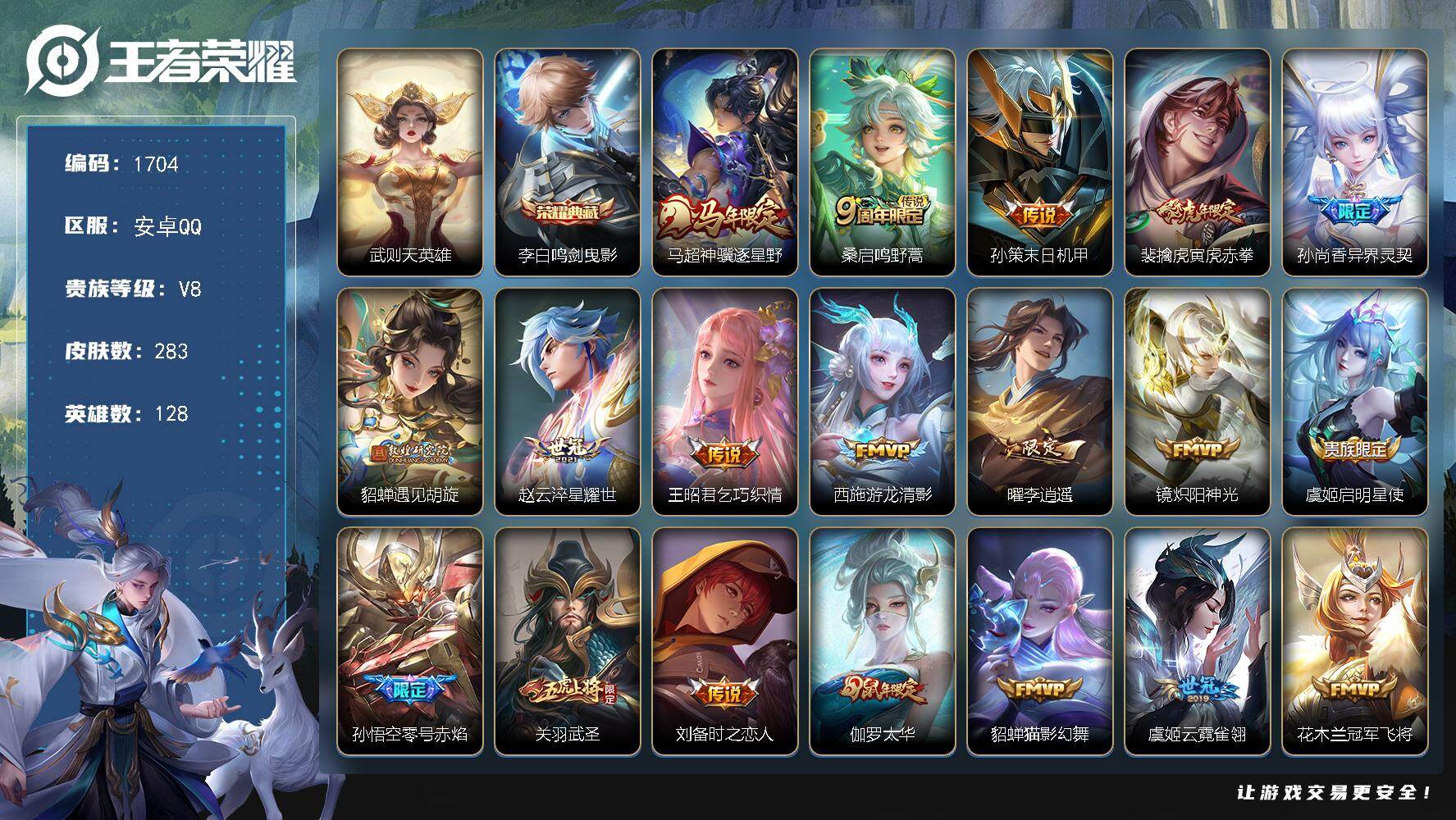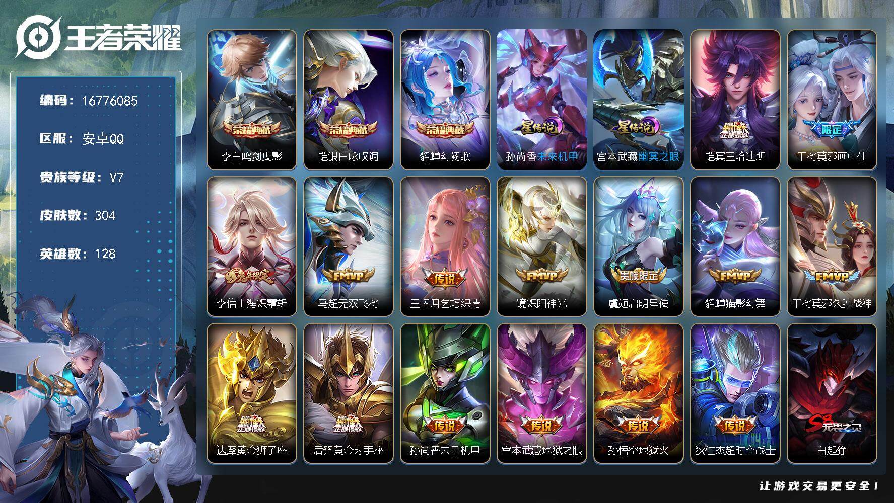 【16776085】安卓Q-V7-永恒钻石I段位-128英雄-304皮肤-3典