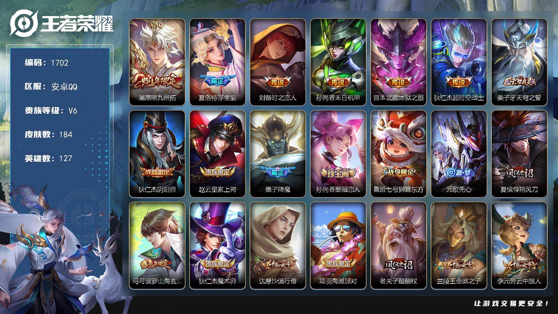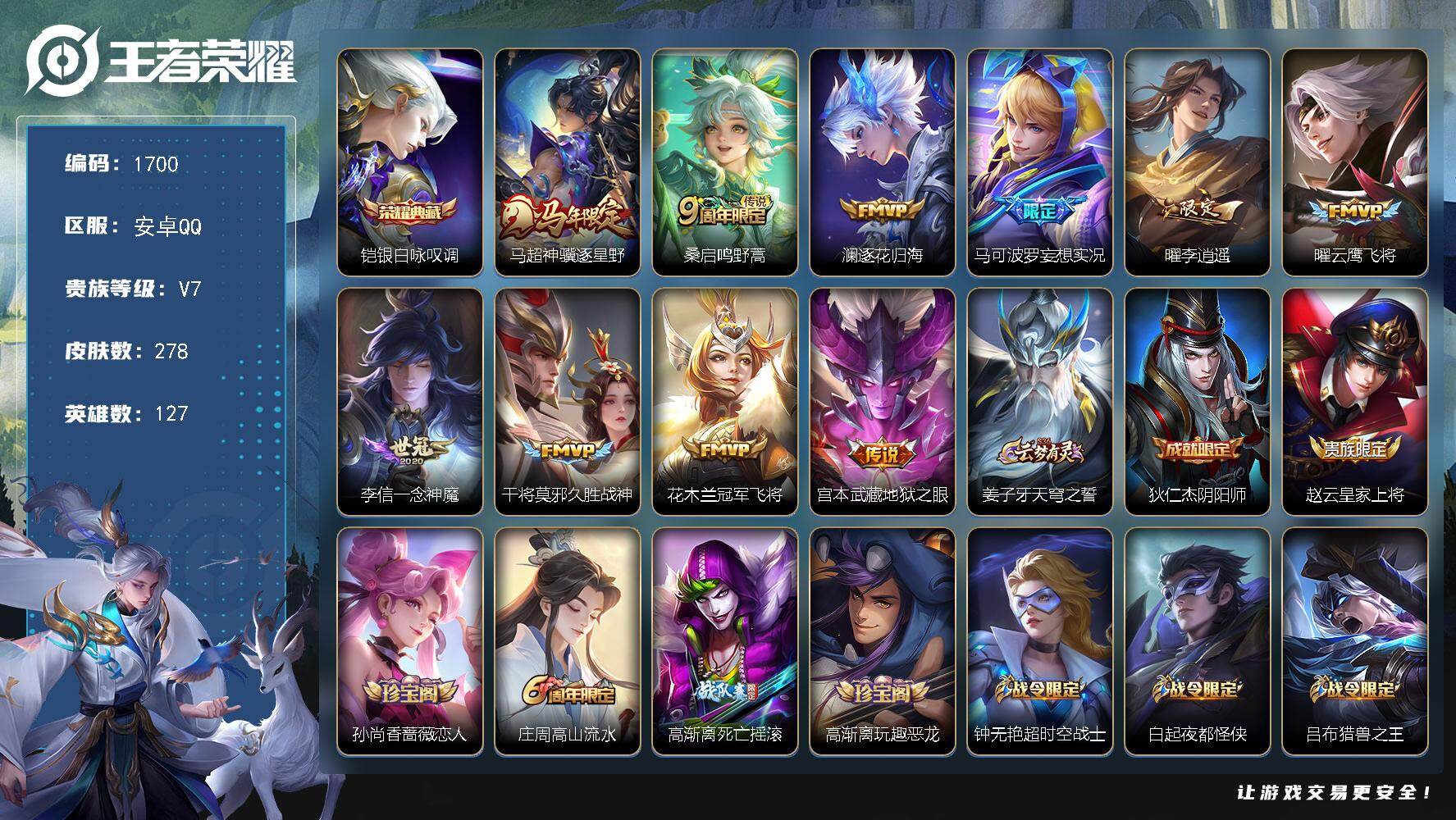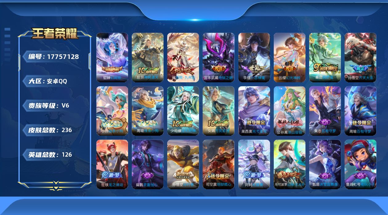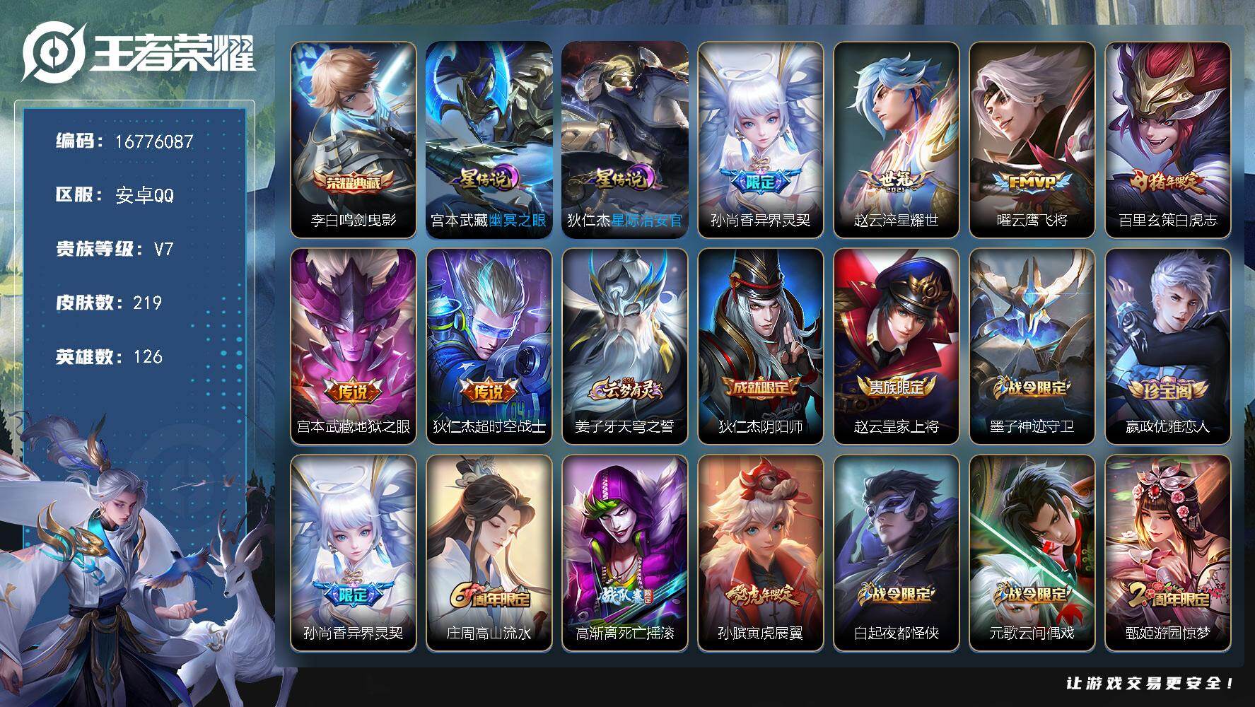 【16776087】安卓Q-V7-最强王者段位-126英雄-219皮肤-1典藏